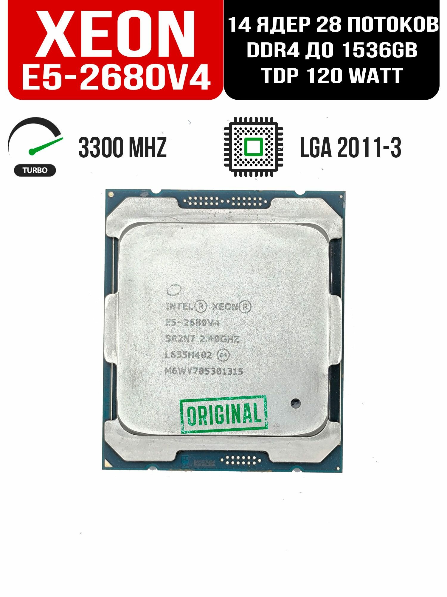 Процессор Intel Xeon E5-2680v4 lga 2011-3 turbo 3.3 ghz 14/28 120w SR2N7 интересное: