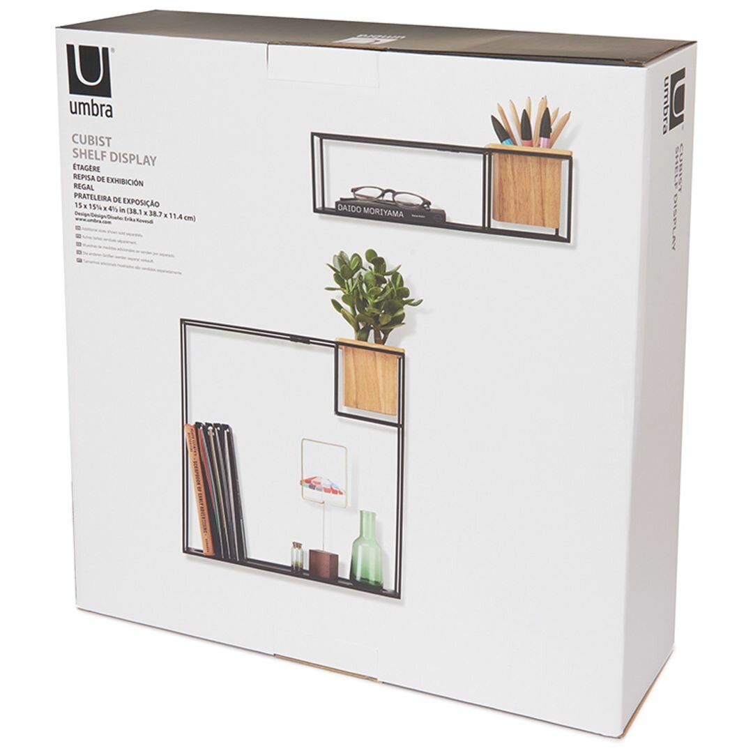 Полка-органайзер Cubist большая 38х38х12 см, цвет черный, материал металл + дерево, Umbra, 470754-427