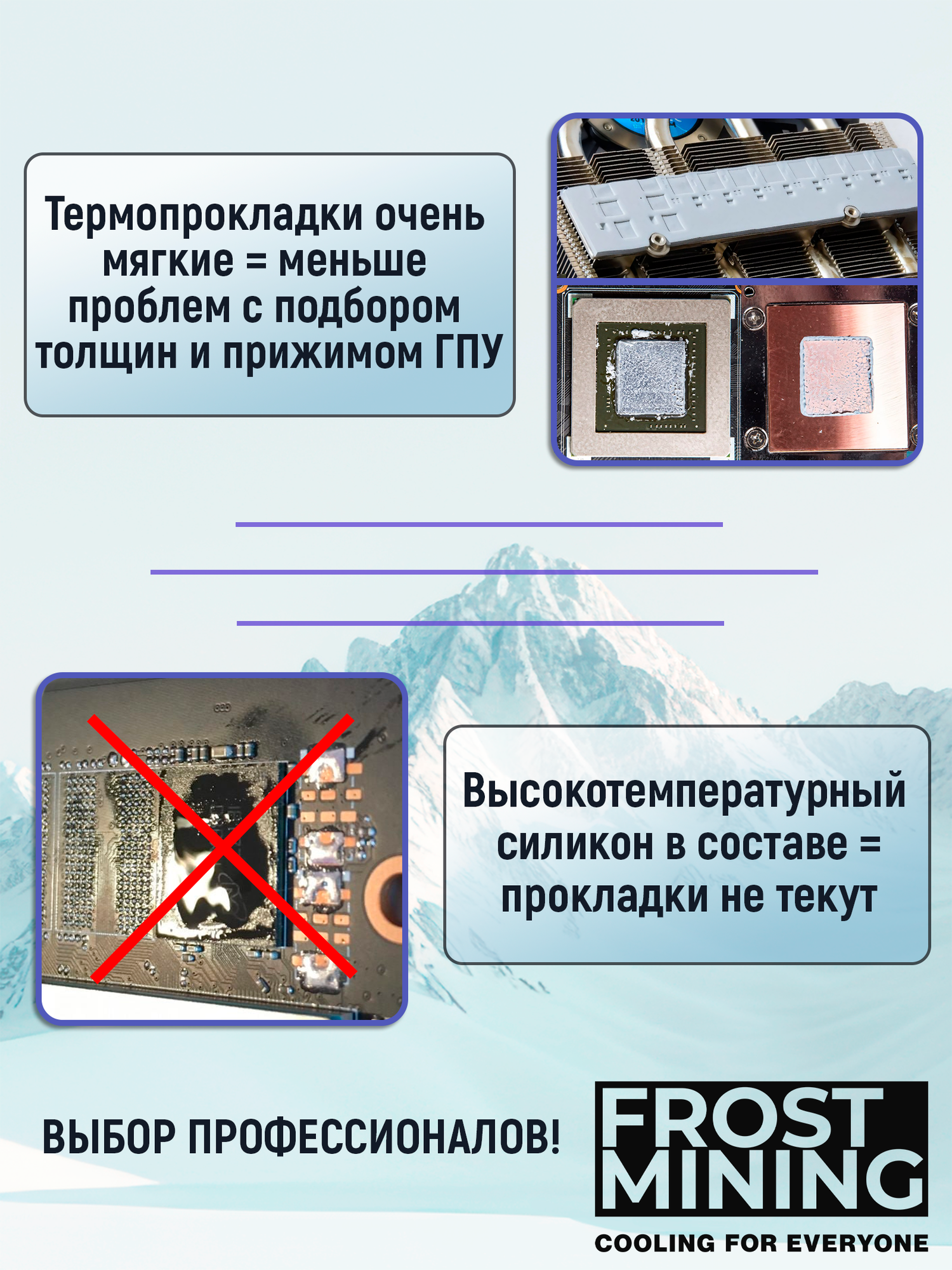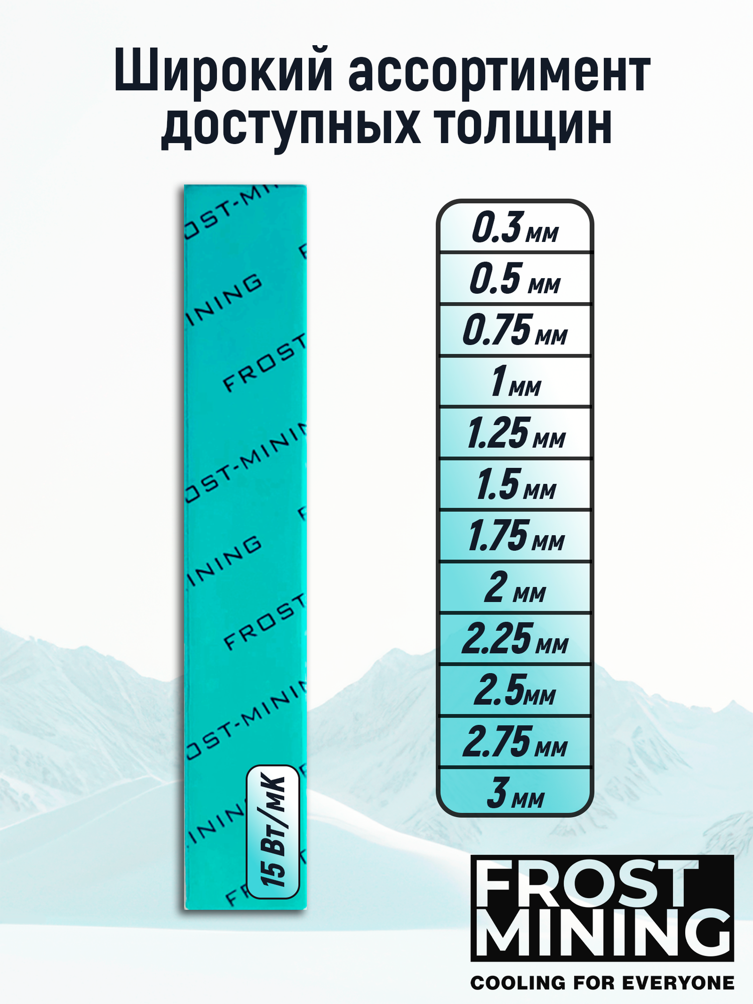 Термопрокладка 2.5 мм 15 Вт/мК 100*100 мм для видеокарты, ноутбука, консоли, компьютера, ссд, асика FrostMining Maximum Extremal Pads
