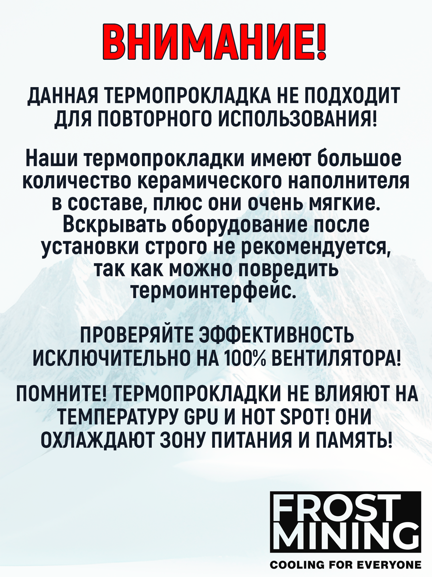 Термопрокладка 1 мм 15 Вт/мК 100*100 мм для видеокарты, ноутбука, консоли, компьютера, ссд, асика FrostMining Maximum Extremal Pads
