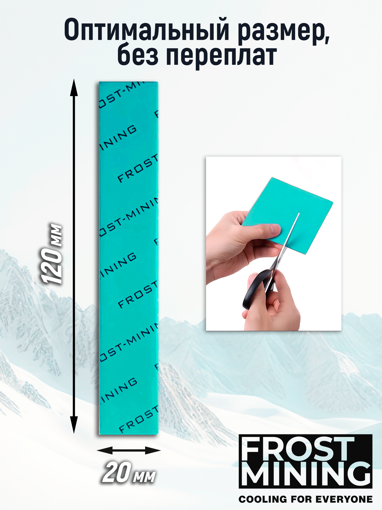 Термопрокладка 1 мм 15 Вт/мК 120*20 мм для видеокарты, ноутбука, консоли, компьютера, ссд, асика FrostMining Maximum Extremal Pads