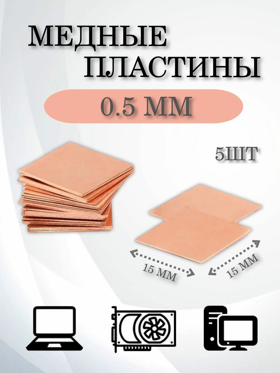 Медная термопрокладка 15x15x0.5 мм/Термопрокладки для ПК/ Медная пластина 5шт интересное: