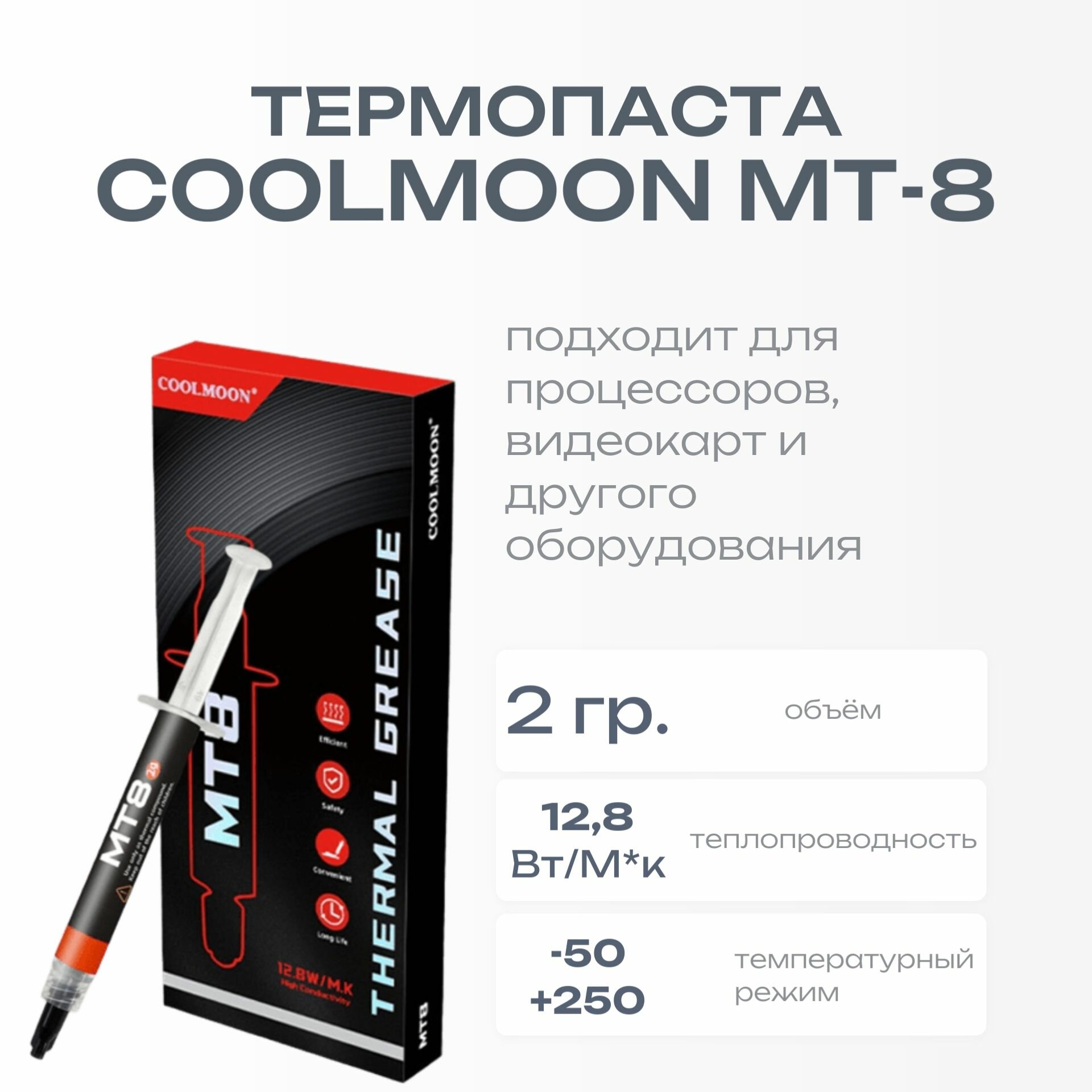 Термопаста Coolmoon MT-8, 12.8 Вт/м*К, 4г
