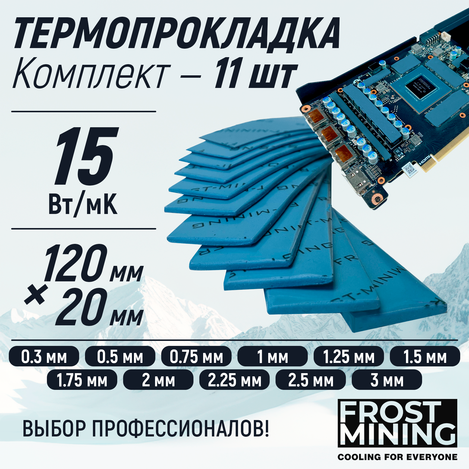Термопрокладка комплект/набор для видеокарты, SSD, ноутбука, компьютера 15W толщиной 0.5/1/1.5/2/3мм Frost Mining Extremal Thermal Pads V3