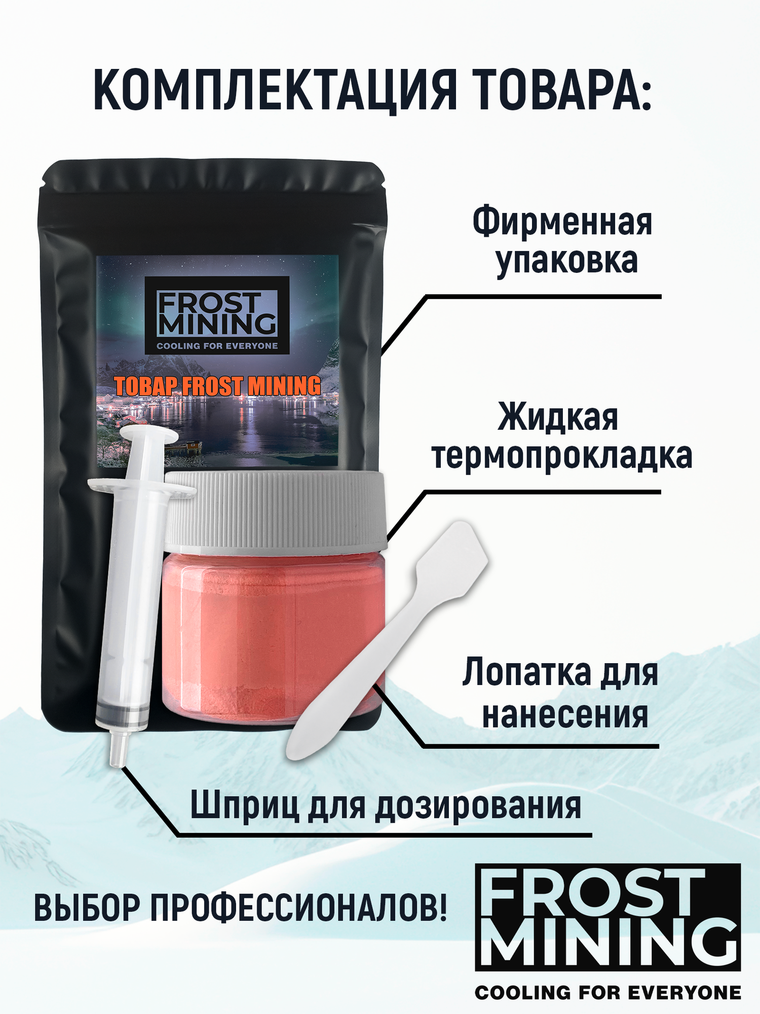 Жидкая термопрокладка для видеокарты, ноутбука, консоли, асика 20 Вт/мК 40г FrostMining Liquid Thermal Pads интересное: