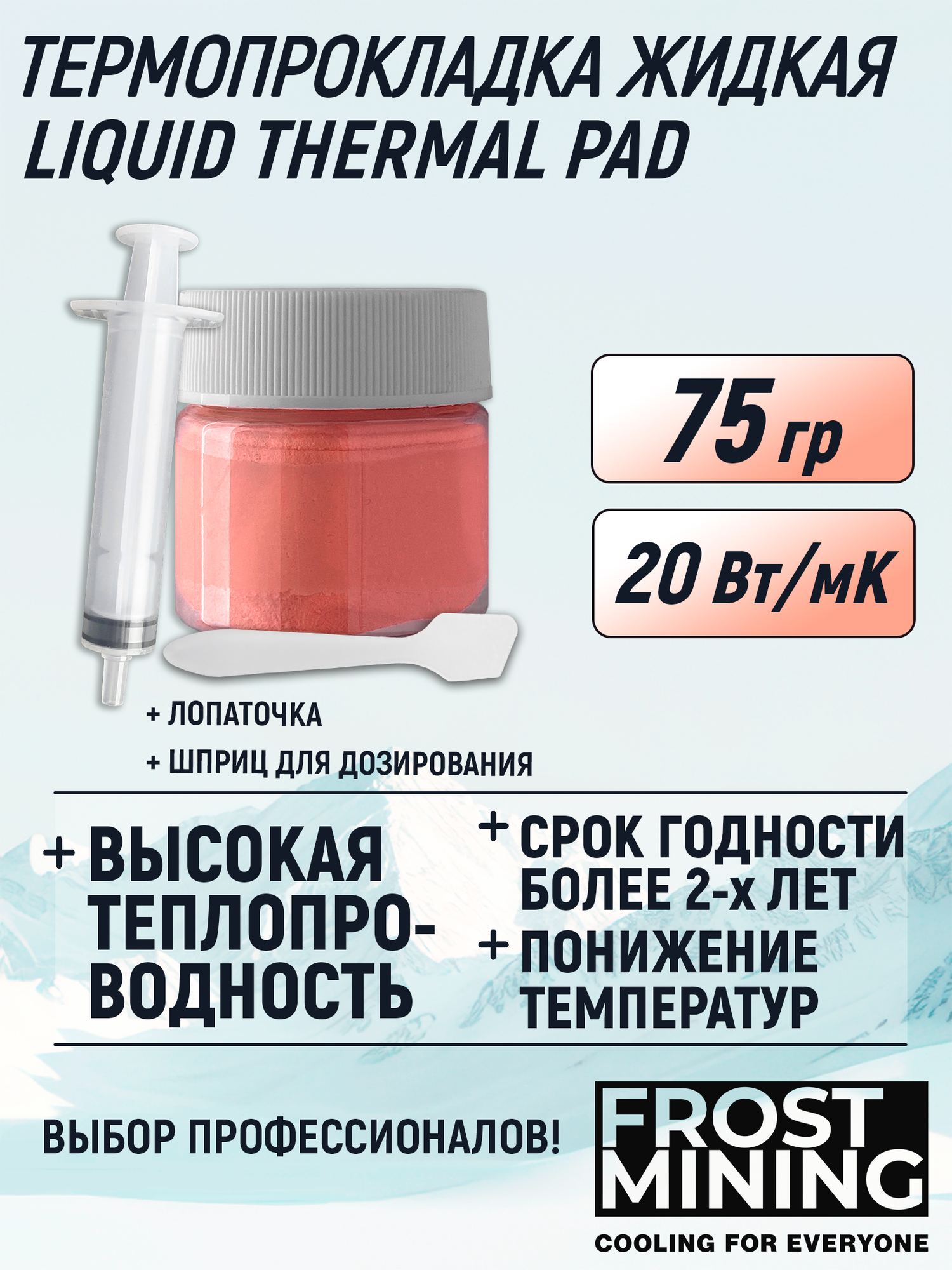 Купить Жидкая термопрокладка для видеокарты, ноутбука, консоли, асика 20 Вт/мК 75г FrostMining Liquid Thermal Pads
