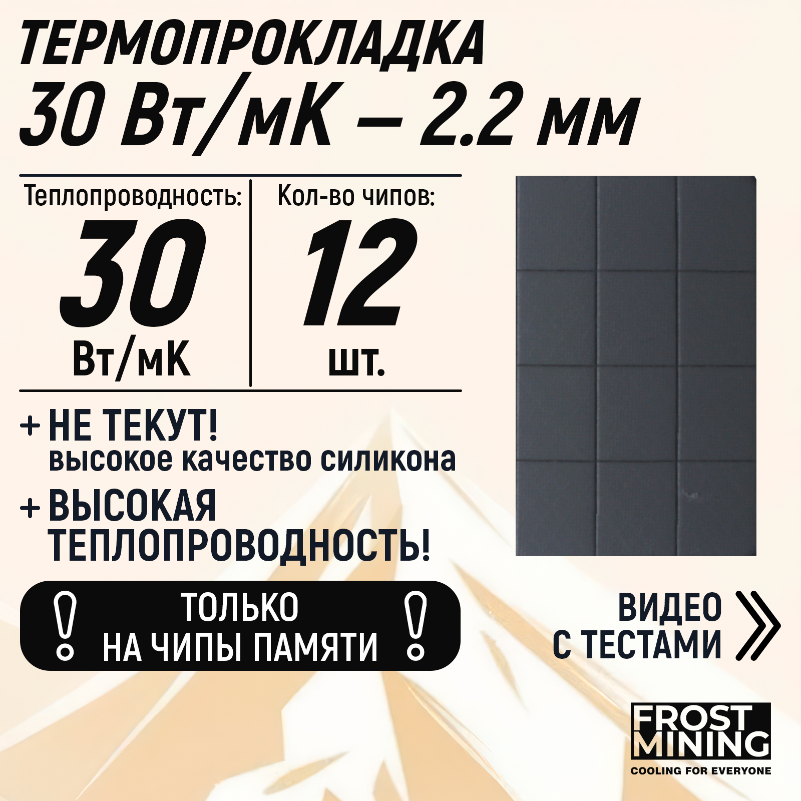 Термопрокладка 2.25 мм 30Вт/Мк для чипов памяти RTX 3080, 3090 FrostMining интересное: