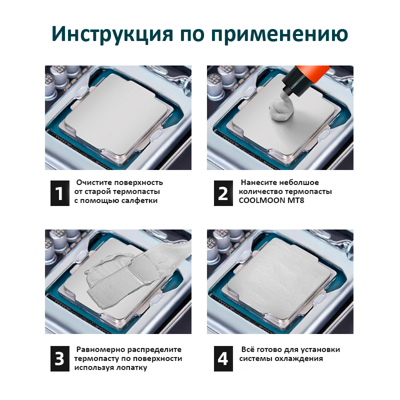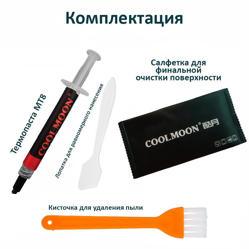 Термопаста COOLMOON MT8 12.8 Вт/мК 2г в шприце со шпателем и кисточкой для процессора, видеокарты интересное: