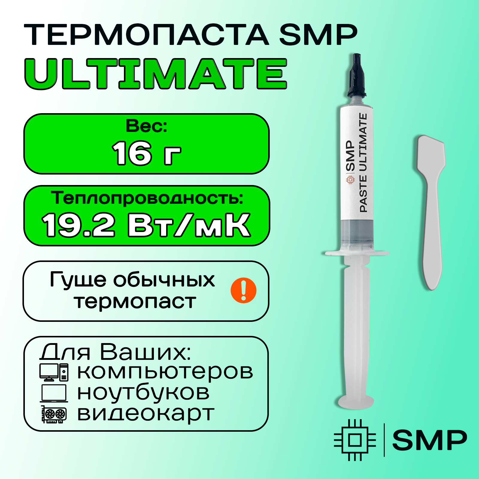 Купить Термопаста SMP-ULTIMATE 19.2 Вт/мК 16г. для процессора, GPU, CPU, видеокарты, ноутбука, консоли, асика, светодиодов SmartMaster PRO