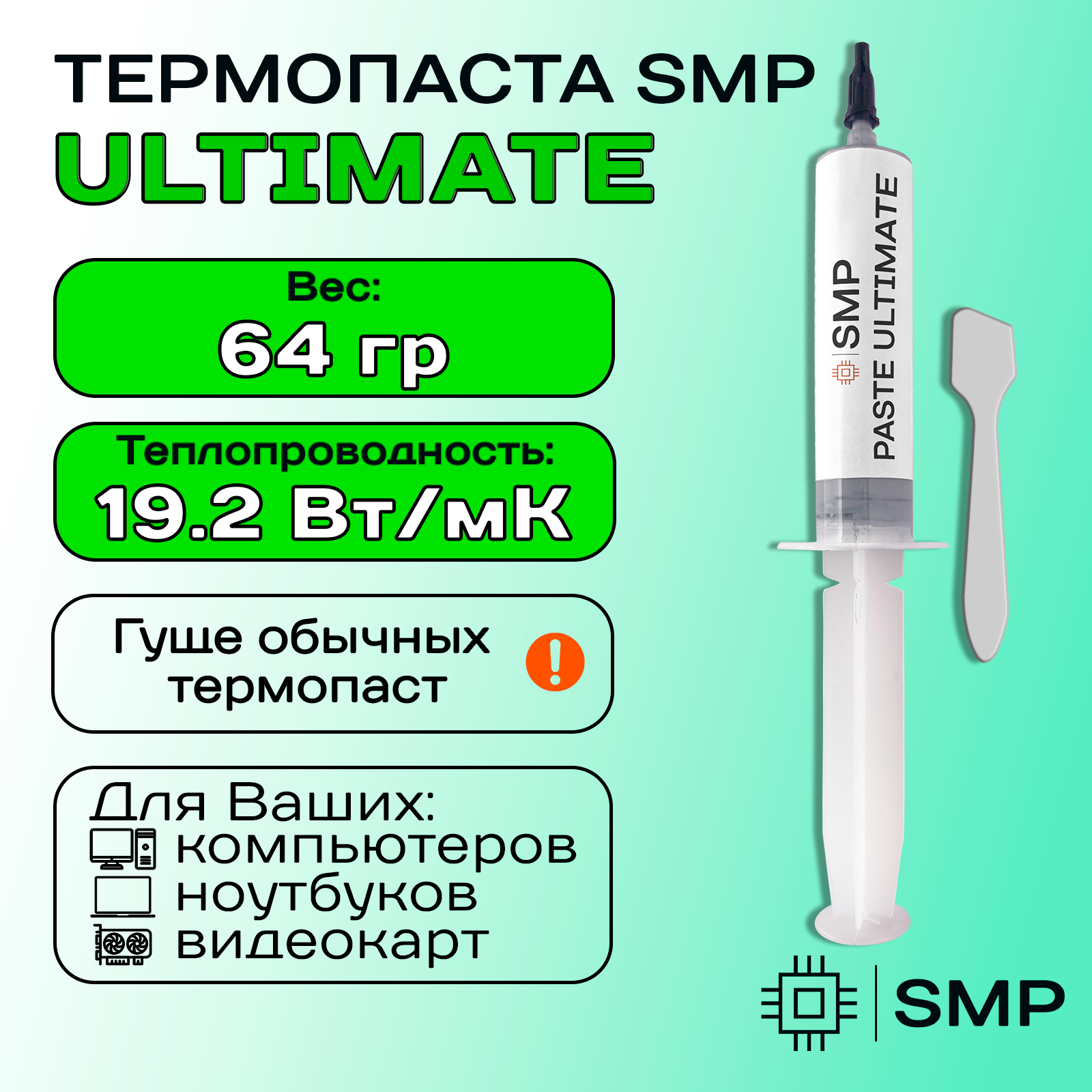Купить Термопаста SMP-ULTIMATE 19.2 Вт/мК 64г. для процессора, GPU, CPU, видеокарты, ноутбука, консоли, асика, светодиодов SmartMaster PRO