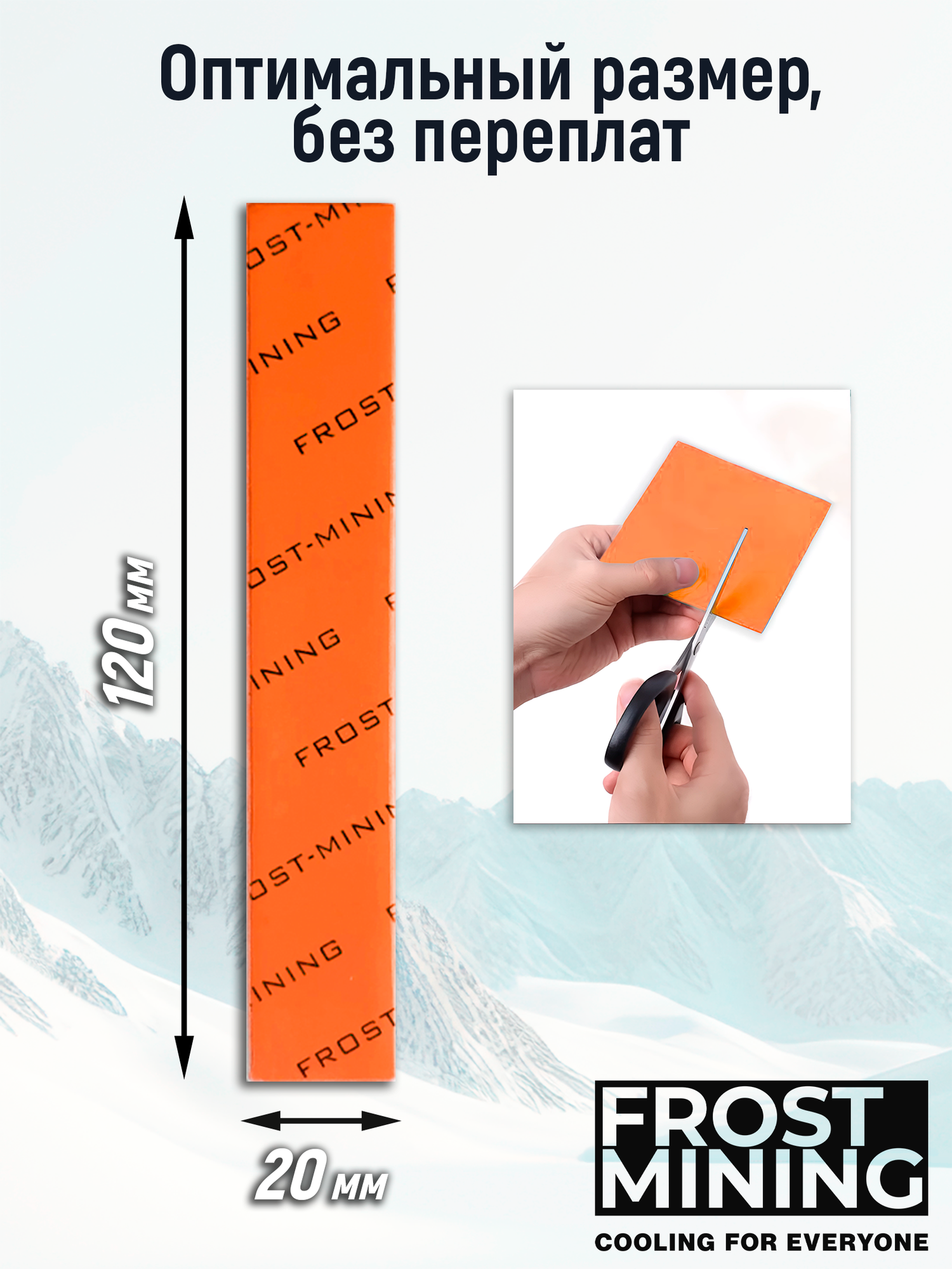 Термопрокладка 0.5 мм 20 Вт/мК 120*20 мм для видеокарты, ноутбука, консоли, компьютера, ссд, асика FrostMining Maximum Thermal Pads