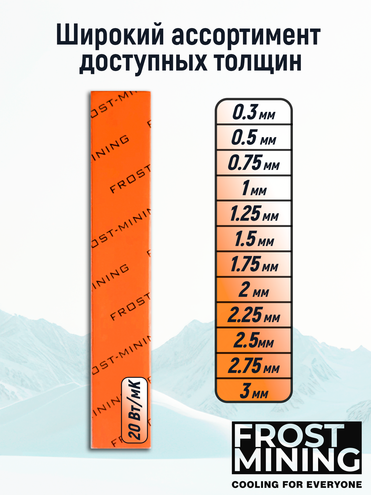 Термопрокладка 2.5 мм 20 Вт/мК 100*100 мм для видеокарты, ноутбука, консоли, компьютера, ссд, асика FrostMining Maximum Thermal Pads
