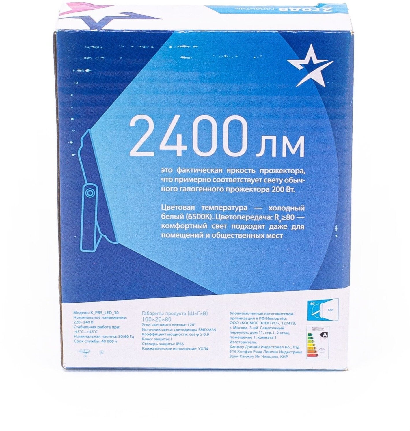 Прожектор светодиодный 30Вт 6500К IP65 2400лм космос K_PR5_LED_30