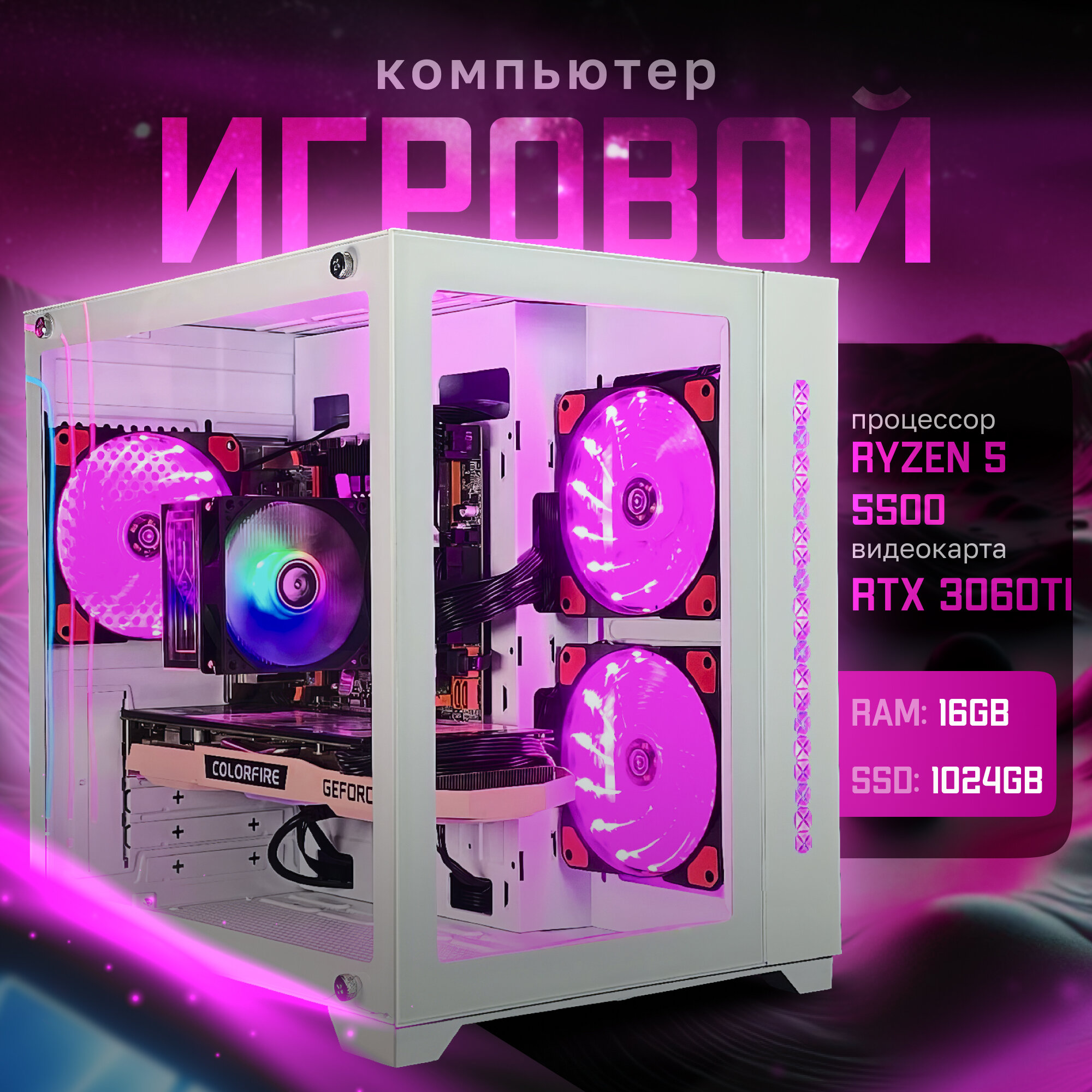 Игровой компьютер RYZEN 5 5500 | RTX 3060TI 8GB | 32ГБ ОЗУ | SSD 1024GB | "CUBE V400"