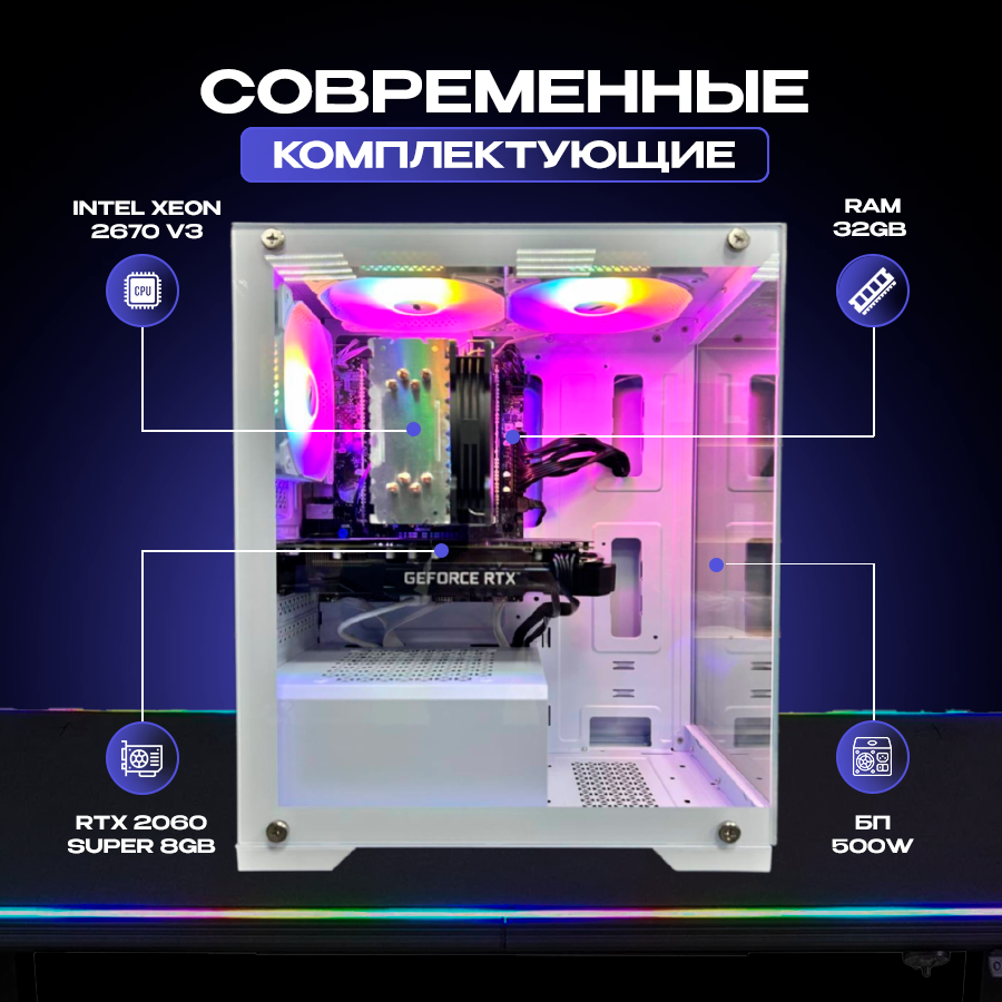 Игровой компьютер, пк (Intel Core i7 12 ядер Xeon 2670v3, RTX 2060 SUPER 8ГБ, 32 ГБ RAM, SSD m.2 1000ГБ)