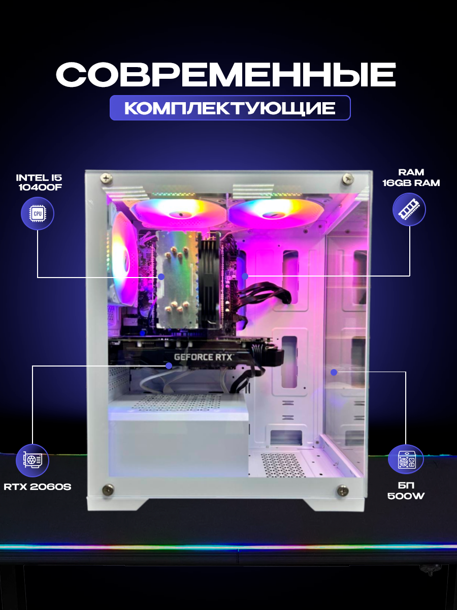 Игровой компьютер Intel Core i5-13400F (4.6 GHz), RTX 2060 SUPER 8ГБ, 16ГБ RAM, SSD 512ГБ
