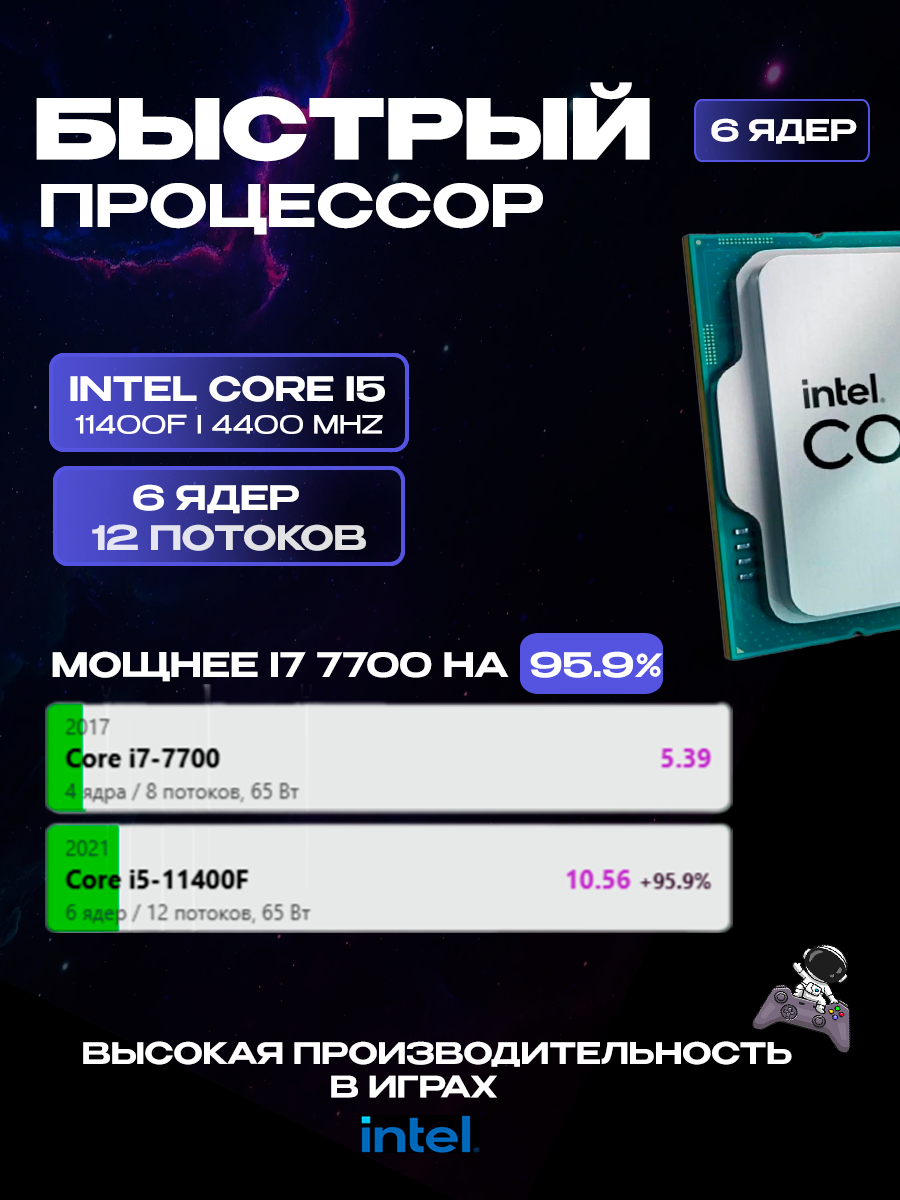 Игровой компьютер Intel Core i5-11400F (4.4 GHz), GTX 1660 SUPER 6ГБ, 16ГБ RAM, SSD 512ГБ