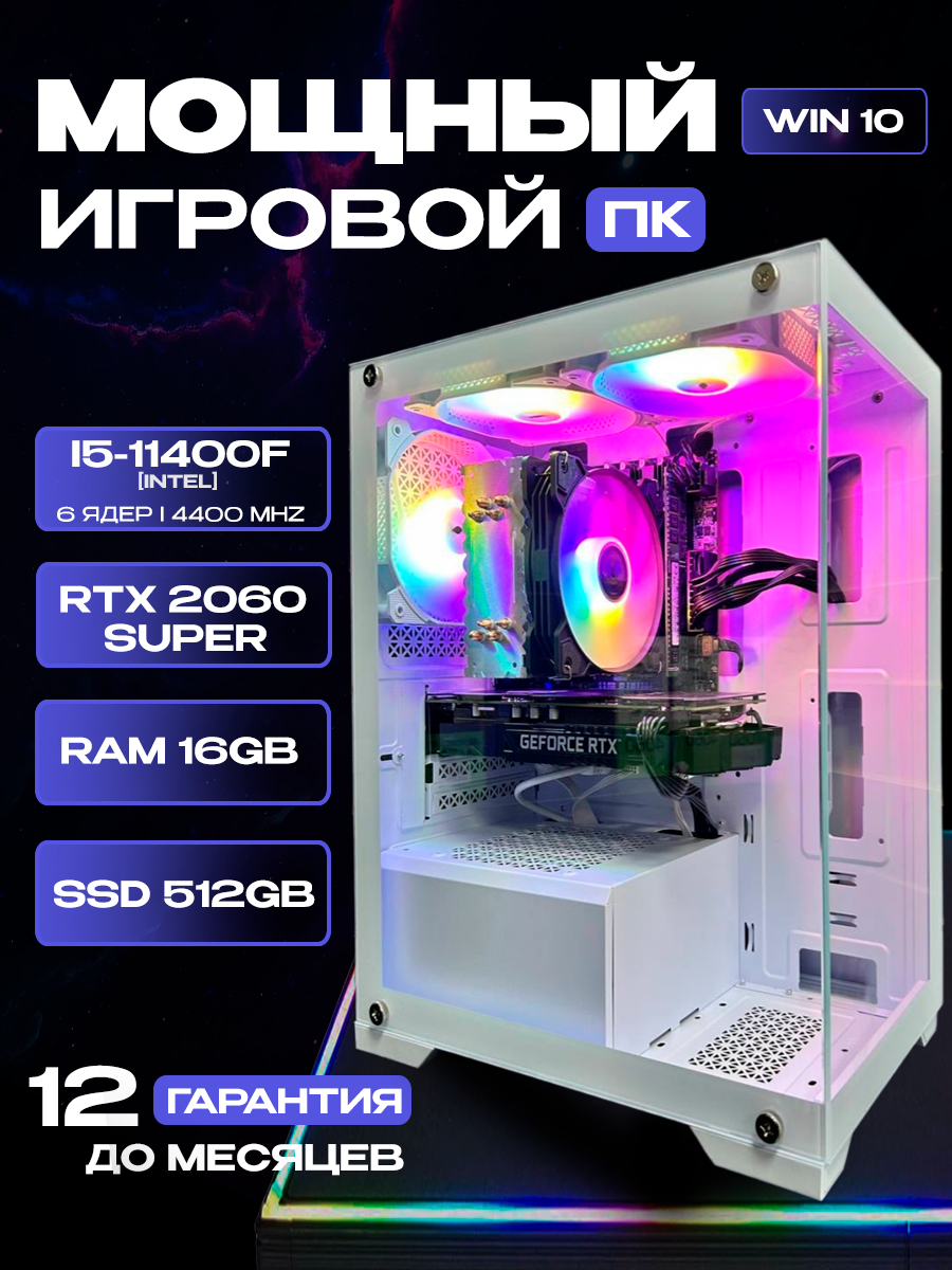 Игровой компьютер Intel Core i5-12400F (4.4 GHz), RTX 2060 SUPER 8ГБ, 16ГБ RAM, SSD 512ГБ