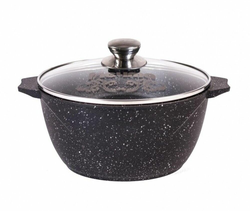 Кастрюля Мечта Гранит Black литая с антипригарным покрытием, со стеклянной крышкой, 6л, гранит black