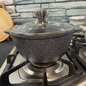 Кастрюля Мечта Гранит Black литая с антипригарным покрытием, со стеклянной крышкой, 6л, гранит black