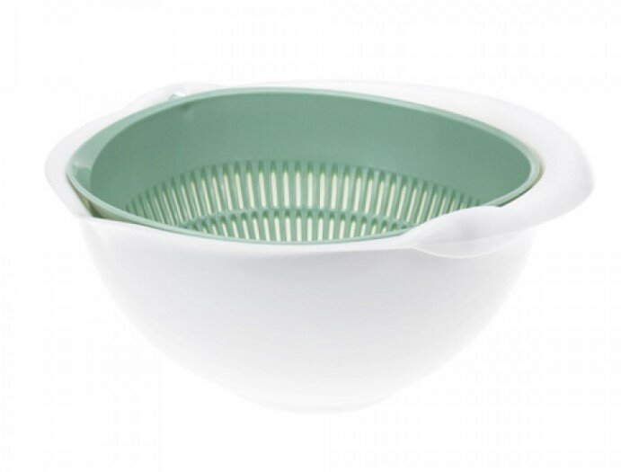 Миска-дуршлаг IDEA (М-Пластика) М 1129, 1.7 л, 2 шт., белый/фисташковый