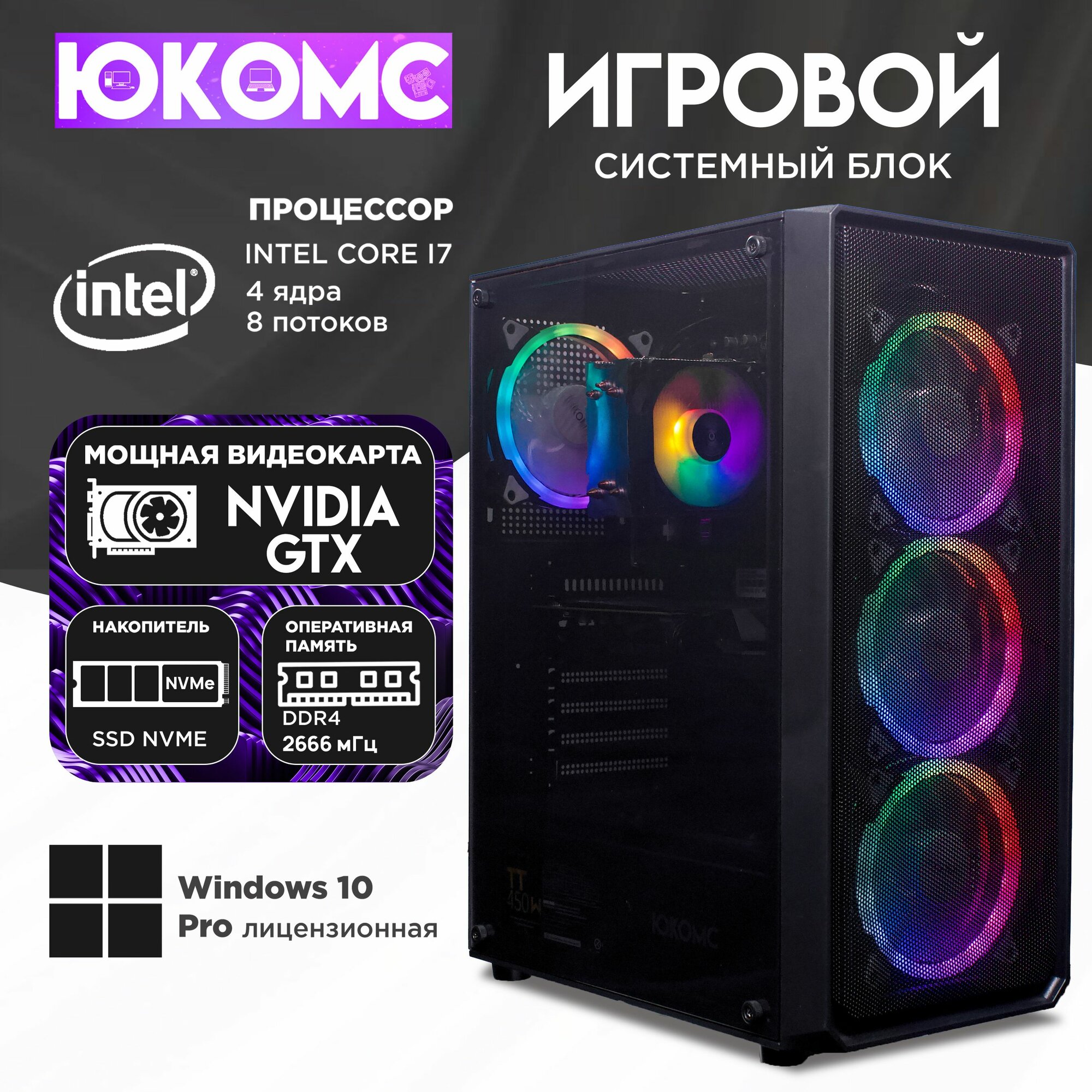 Игровой компьютер юкомс I7 6700, GTX 1650 4GB, SSD 2TB, 32GB DDR4, БП TT450 450W, win 10 pro, Игровой юкомс чёрный