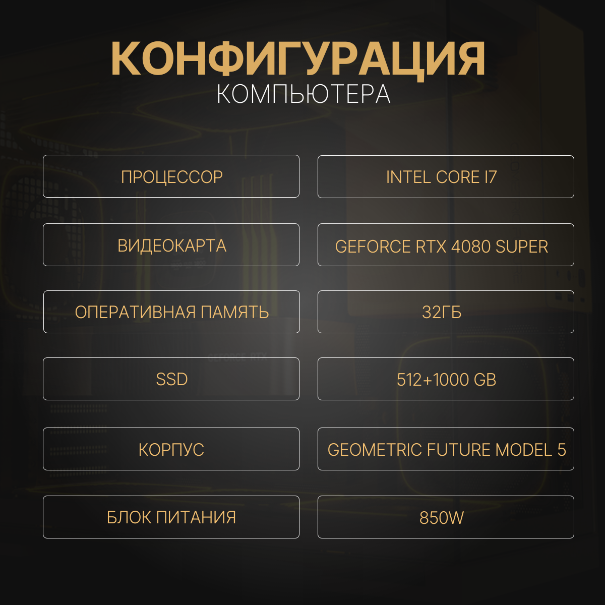СохранитьМощный игровой компьютер (системный блок) Core i7-13700KF /RTX4080 super /32GB/512Gb+1Tb SSD/850W/Win 10 PRO интересное: