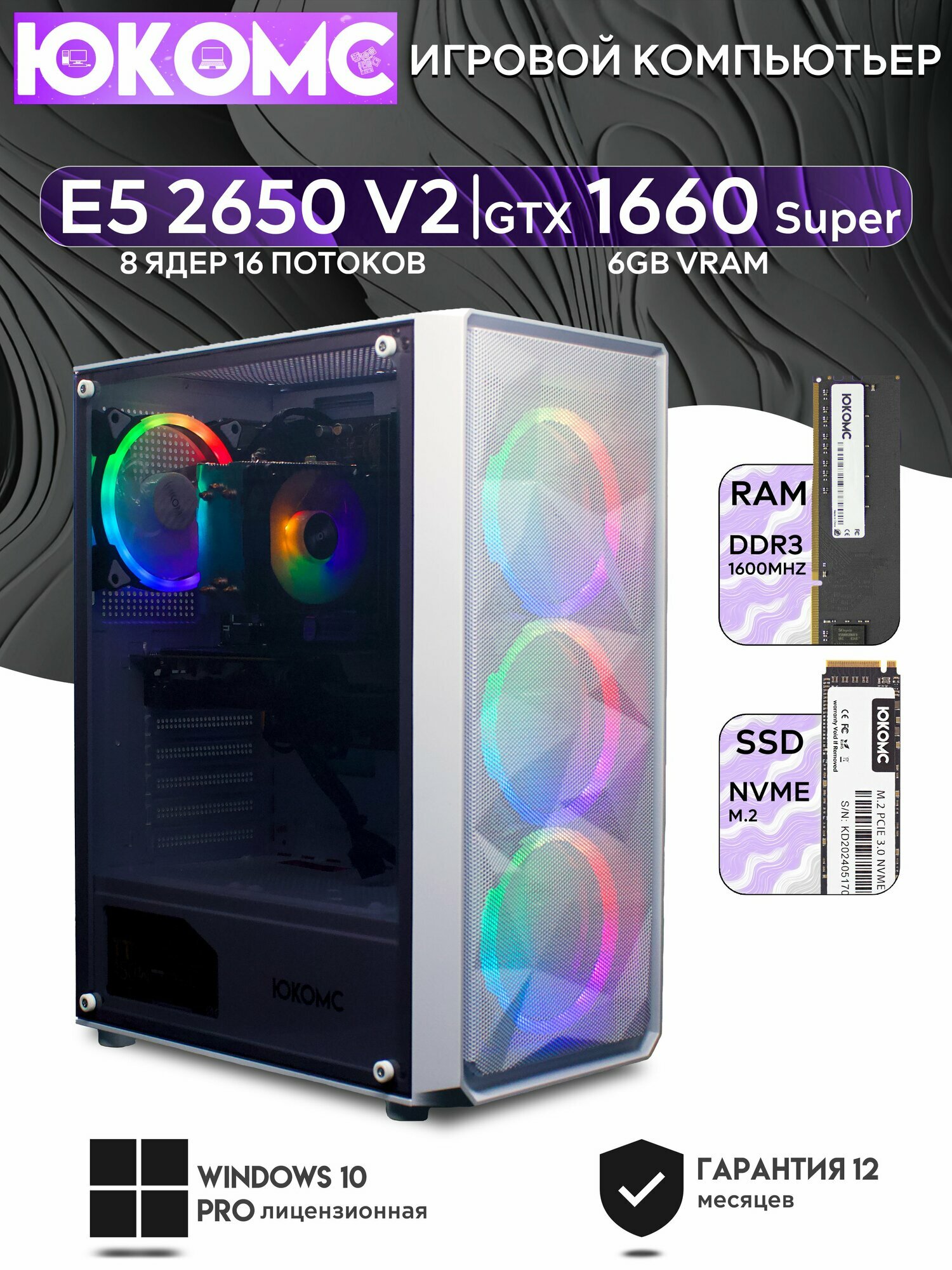 Игровой компьютер юкомс Xeon E5 2650v2, GTX 1660 Super 6GB, HDD 1TB, SSD 512GB, 32GB DDR4, БП TT450 450W, win 10 pro, Игровой юкомс белый