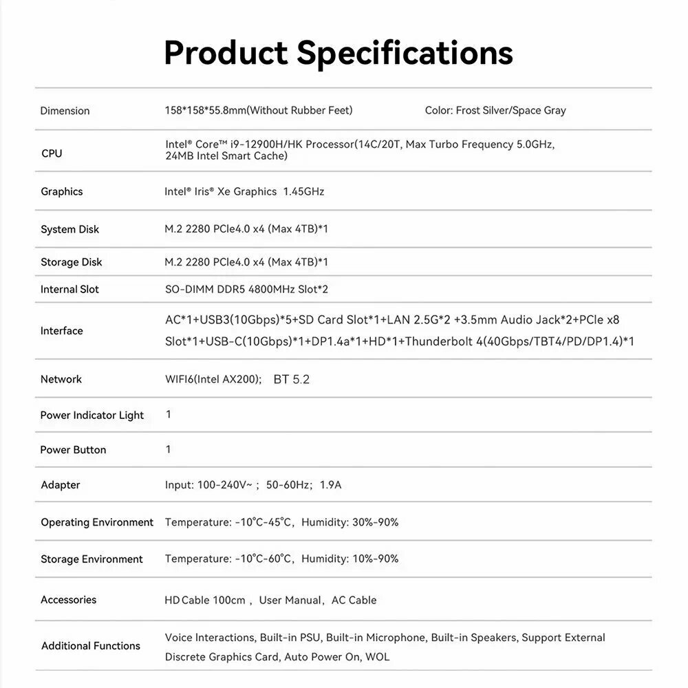 Купить Мини-ПК Beelink GTi12 Ultra, Intel Core i9-12900H, 32ГБ/1ТБ, Windows 11 Pro, серебристый