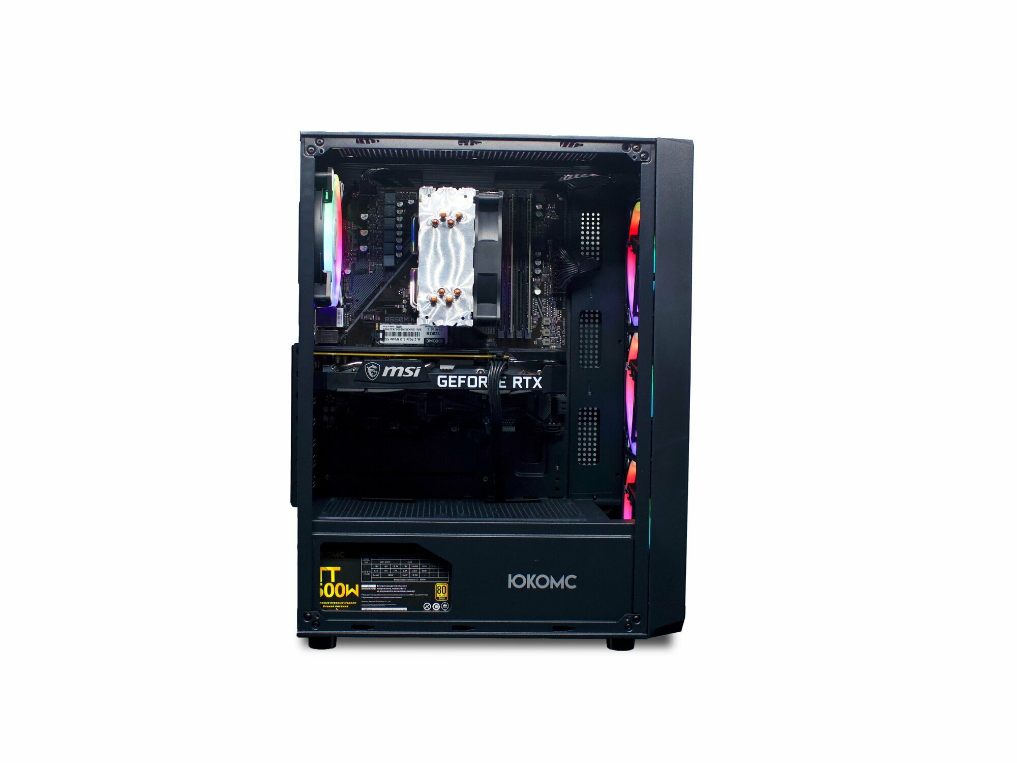 Игровой PC юкомс Ryzen 7 3700X, RTX 3060 Ti 8GB, SSD 480GB, 32GB DDR4, БП TT600 600W, win 10 pro, Игровой юкомс чёрный