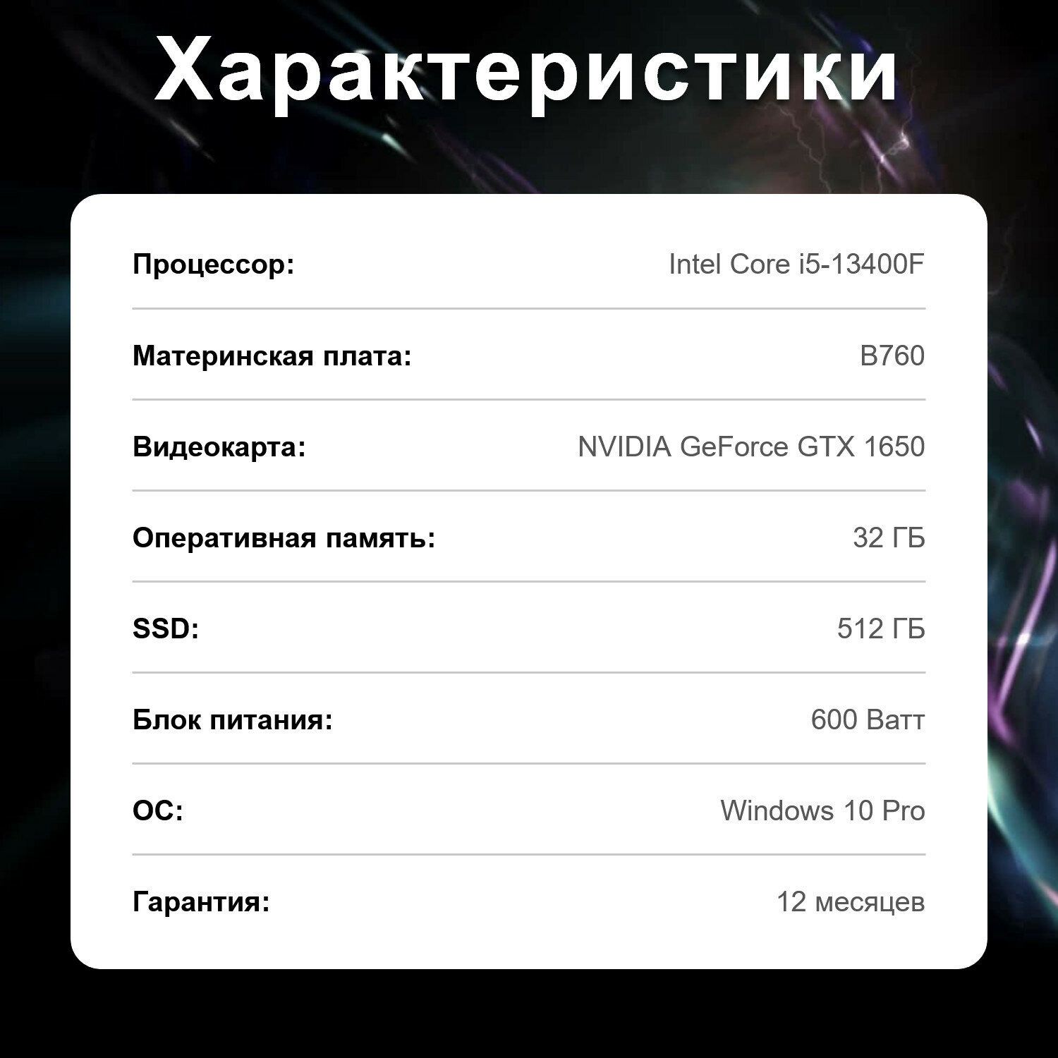 Купить Игровой компьютер WAG 541414651232 (Intel Core i5-13400F / NVIDIA GeForce GTX 1650 / RAM 32 ГБ / SSD 512ГБ)