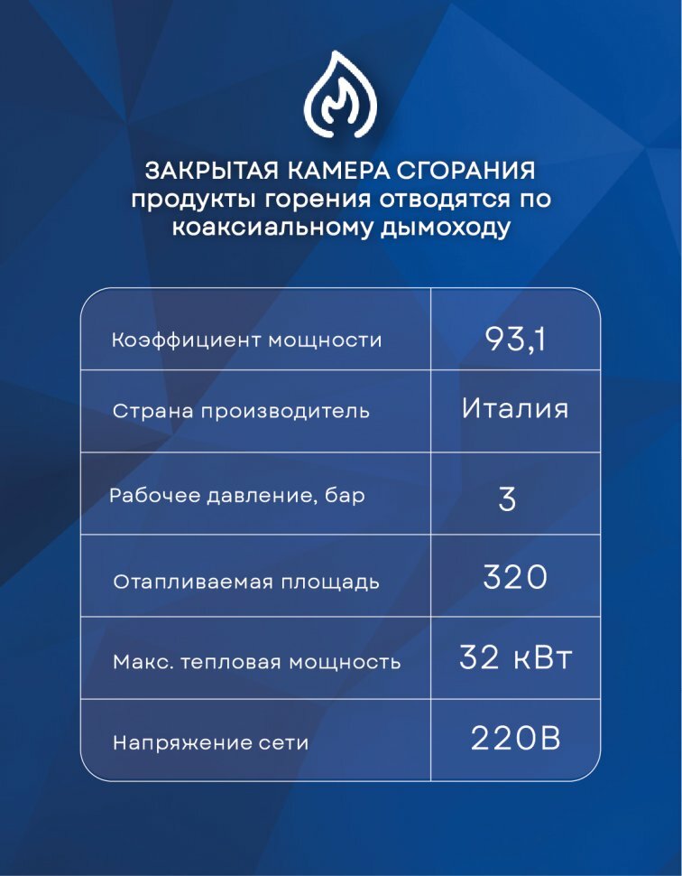 | Диаметр коаксиального дымохода | 60/100 мм |