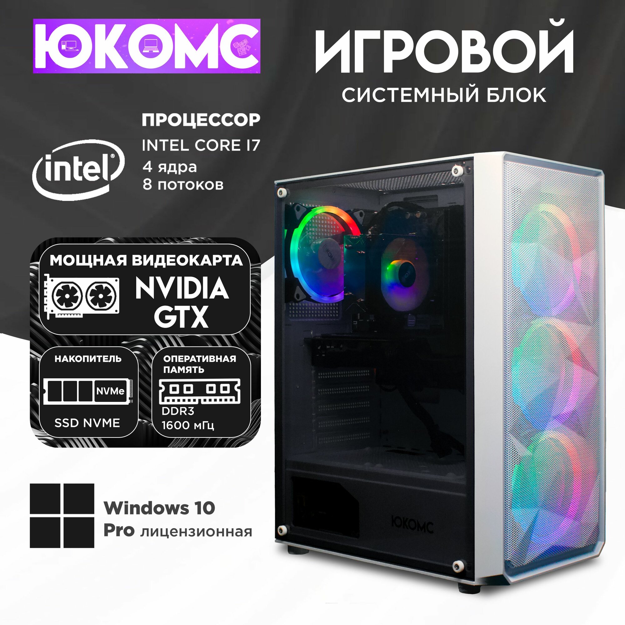 Игровой компьютер юкомс i7 2600, GTX 1650 Super 4GB, SSD 128GB, 8GB DDR3, БП TT450 450W, win 10 pro, Игровой юкомс белый