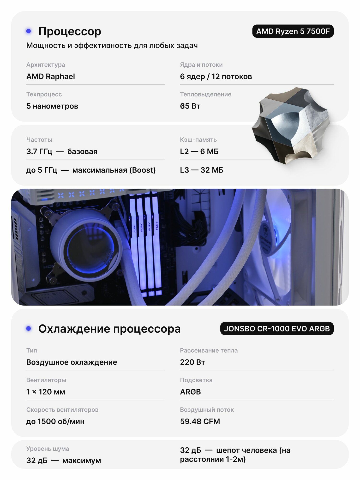 Игровой системный блок ProMid9860: AMD Ryzen 5 7500F, DDR5 64GB, SSD 1Tb, RTX 4080 SUPER, 800W, V390 , Windows 11 Pro