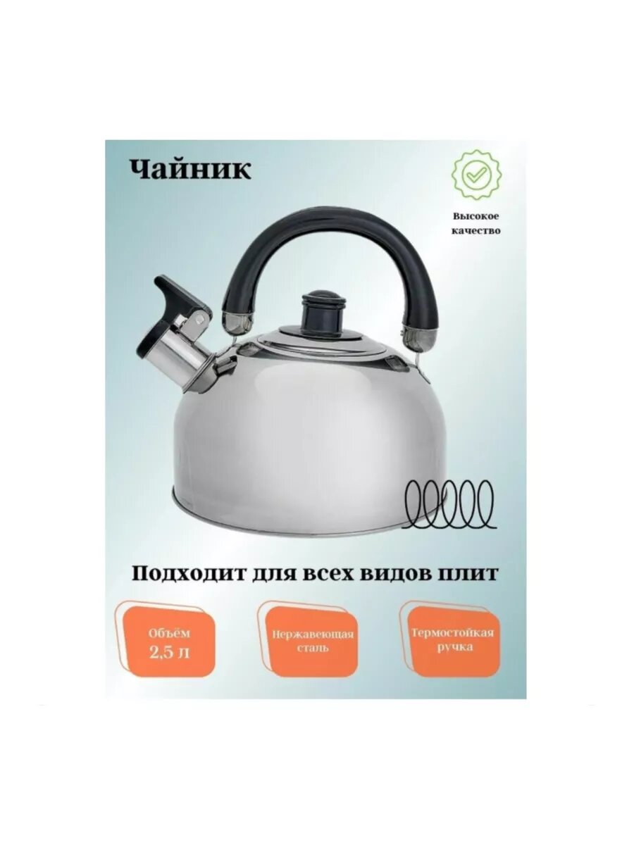 | Плюсы: | Изящный и блестящий чайник со свистком. |