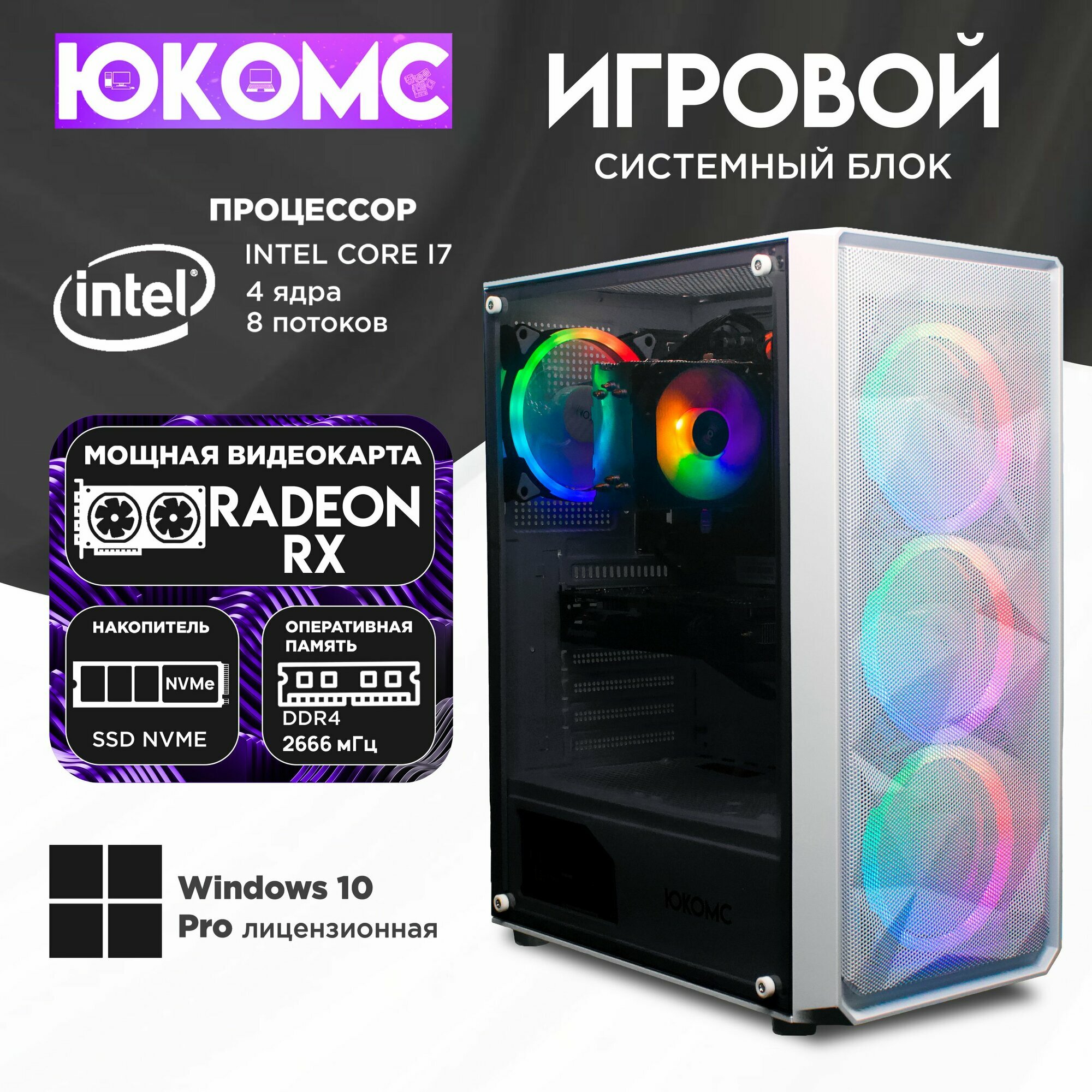 Игровой компьютер юкомс I7 6700, RX 580 8GB, SSD 512GB, 32GB DDR4, БП TT500 500W, win 10 pro, Игровой юкомс белый