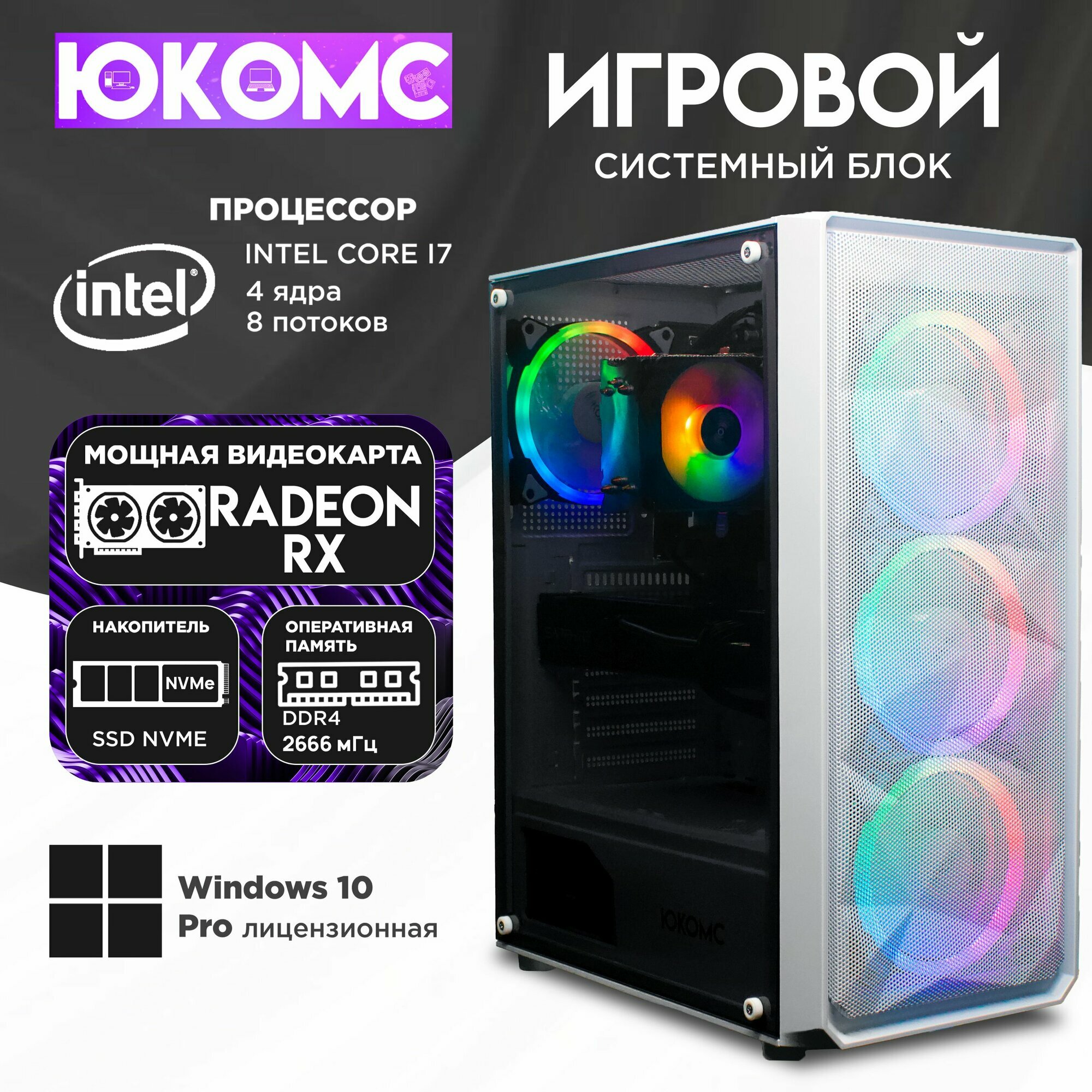 Игровой компьютер юкомс I7 6700, RX 560 4GB, SSD 512GB, 16GB DDR4, БП TT500 500W, win 10 pro, White cube case
