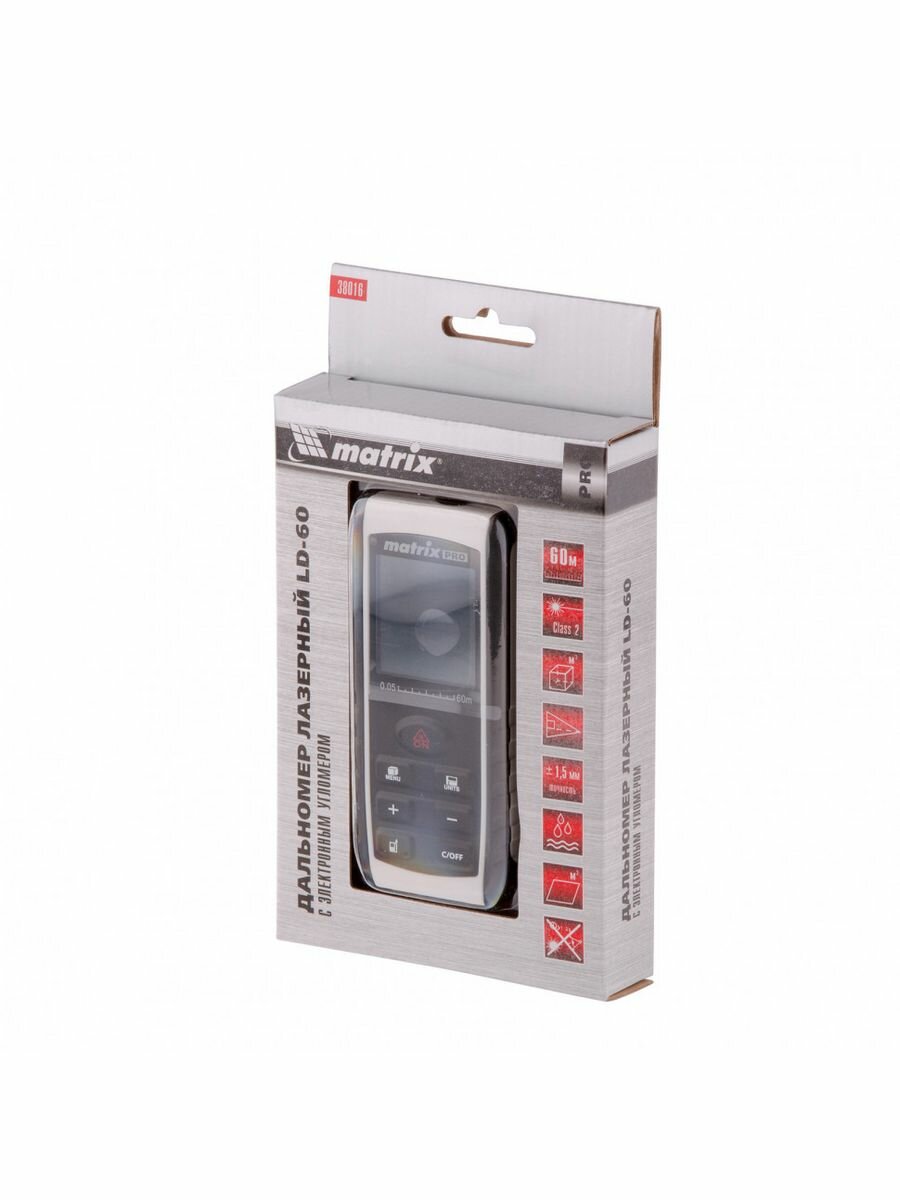 Лазерный дальномер LD-60, 60 м, с электронным угломером, MATRIX 38016