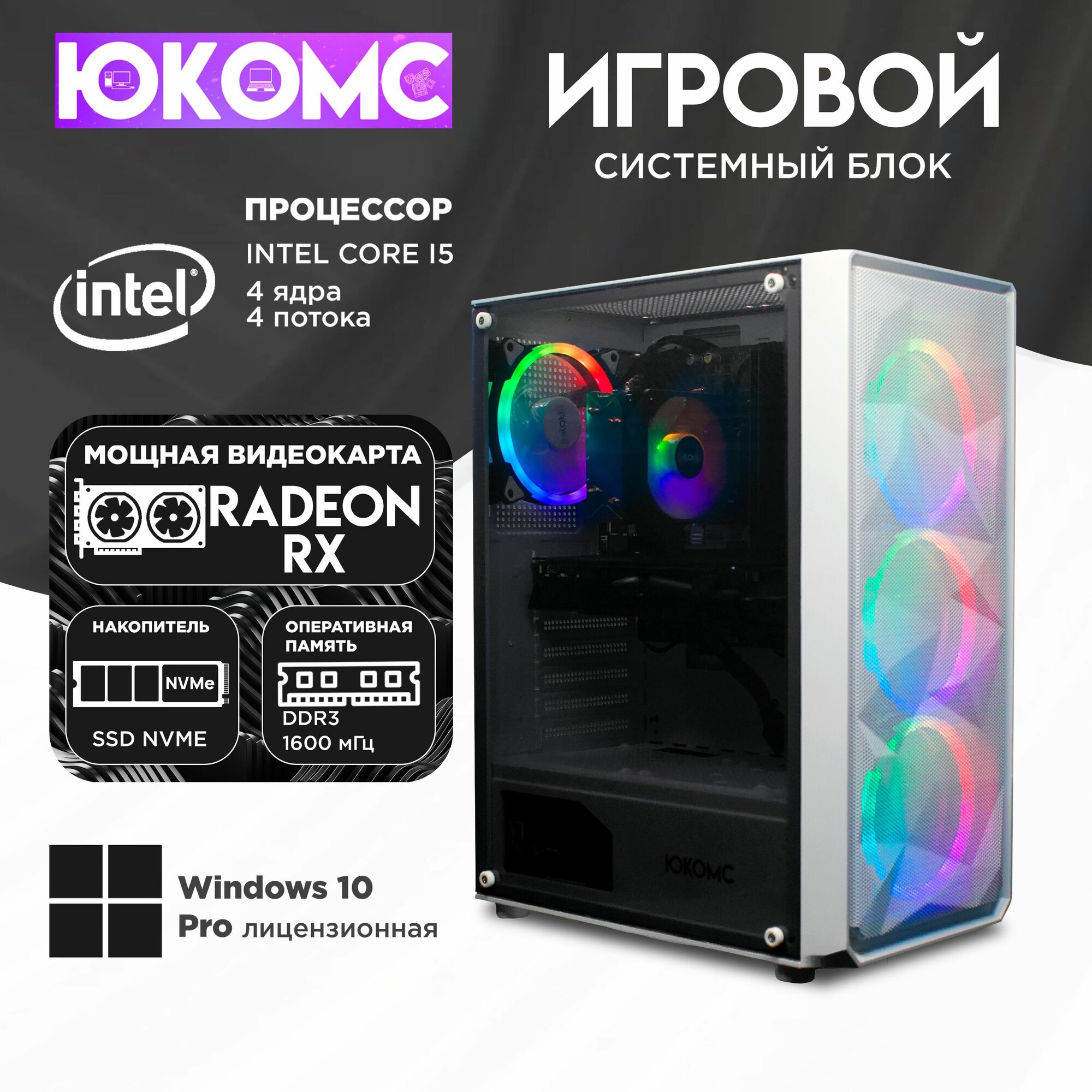 Игровой Компьютер юкомс i5 4570, RX 560 4GB, SSD 512GB, 8GB DDR3, БП TT450 450W, win 10 pro, Игровой юкомс белый