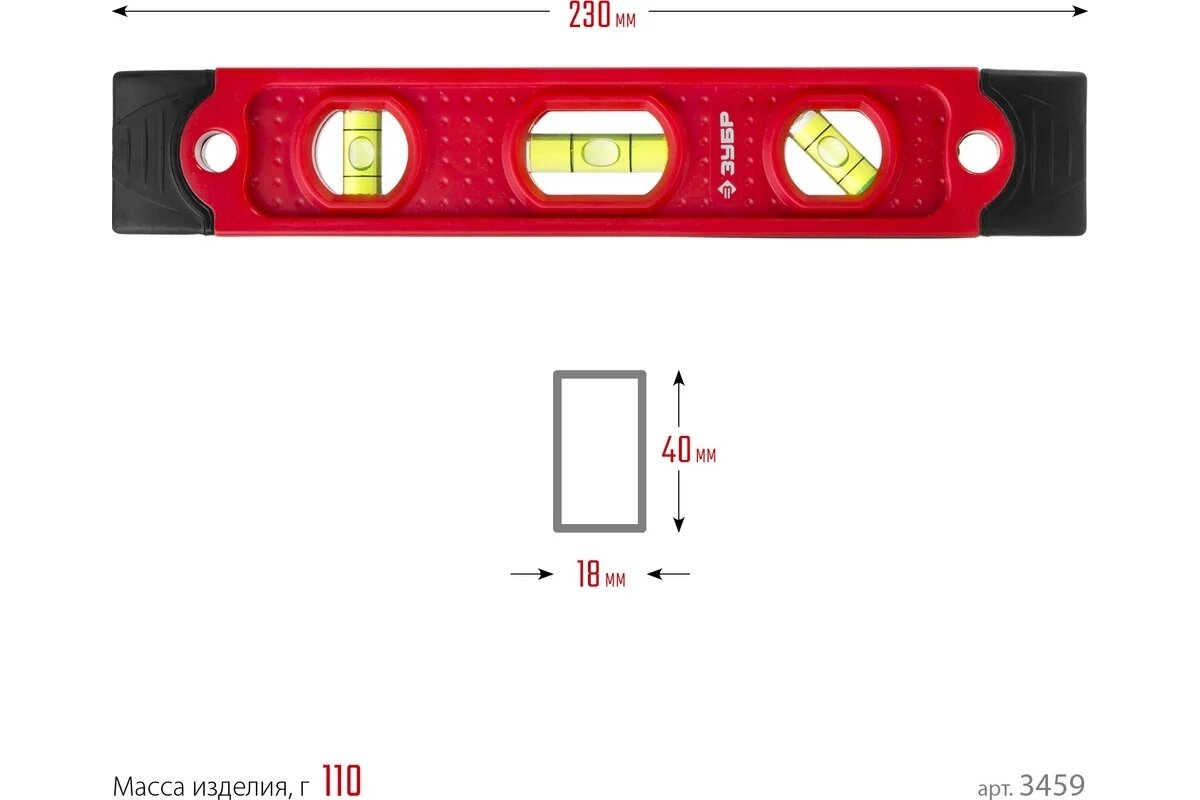 ЗУБР торпедо, 230 мм, пластиковый корпус, компактный магнитный уровень (3459)