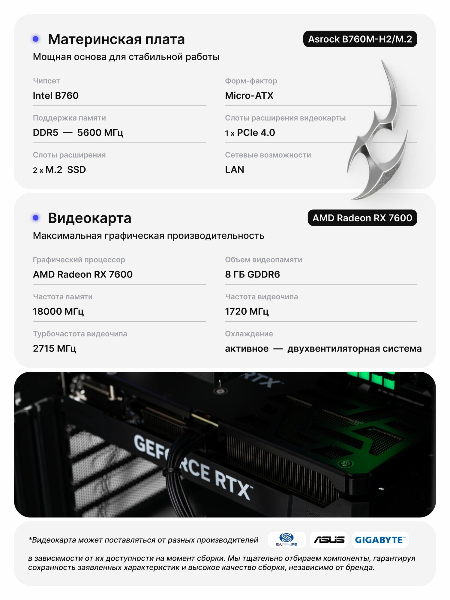 СохранитьИгровой системный блок ProMid624: I3-13100F, DDR5 64GB, SSD 2Tb, RX 7600, 600W, V490 , Windows 11 Pro интересное: