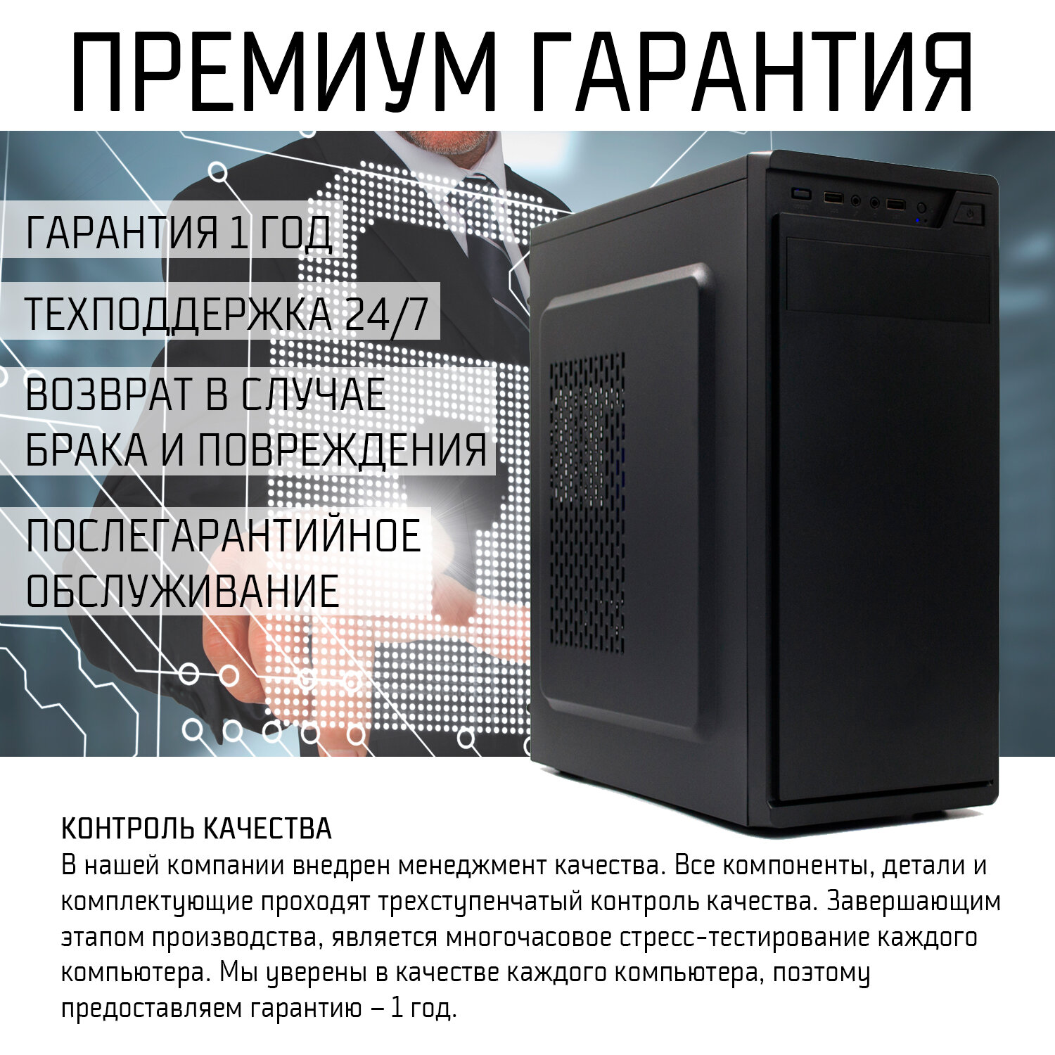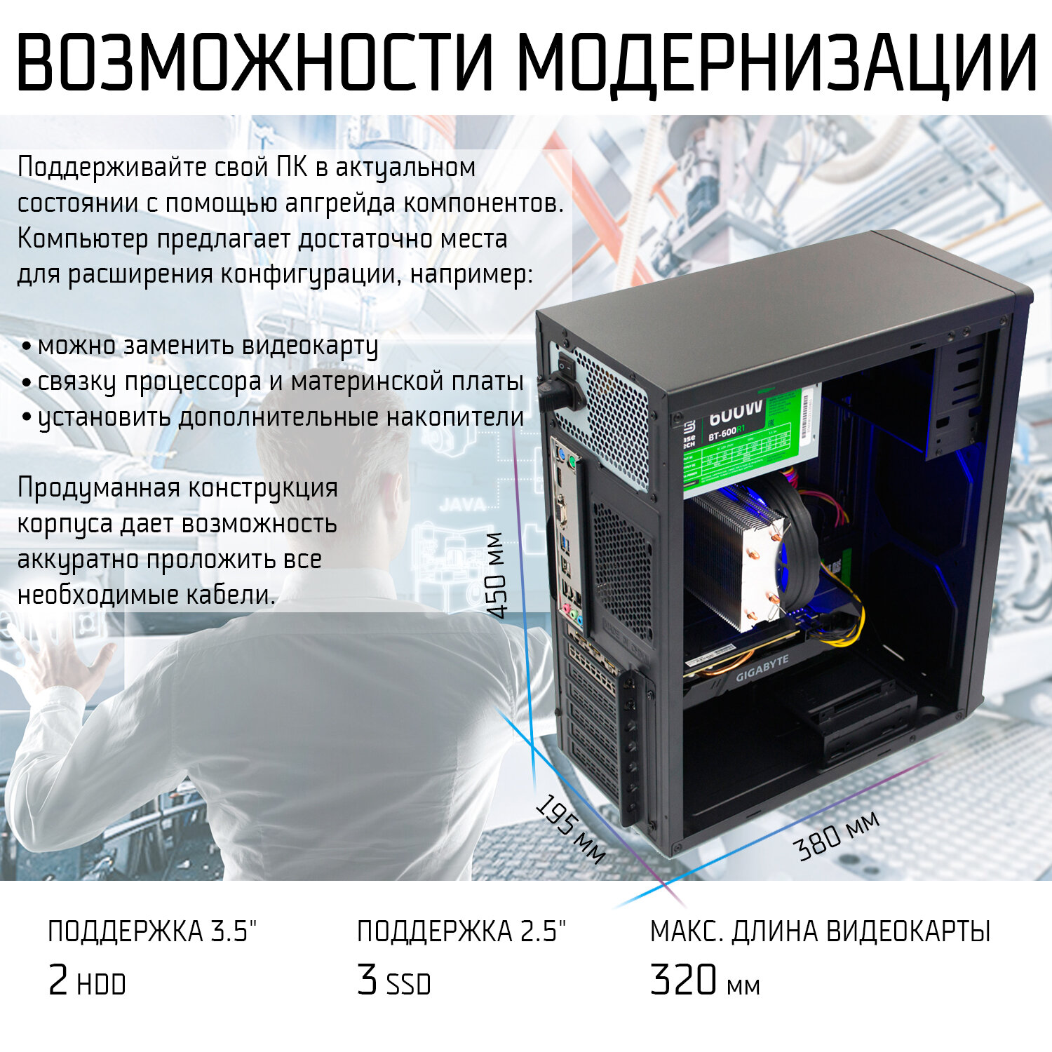Компьютер GANSOR-3074863 Intel i3-10300 3.7 ГГц, B460, 64Гб 2666 МГц, SSD 480Гб, HDD 3Тб, Intel HD Graphics 630, 500Вт, Midi-Tower (Серия OPTIMAL)