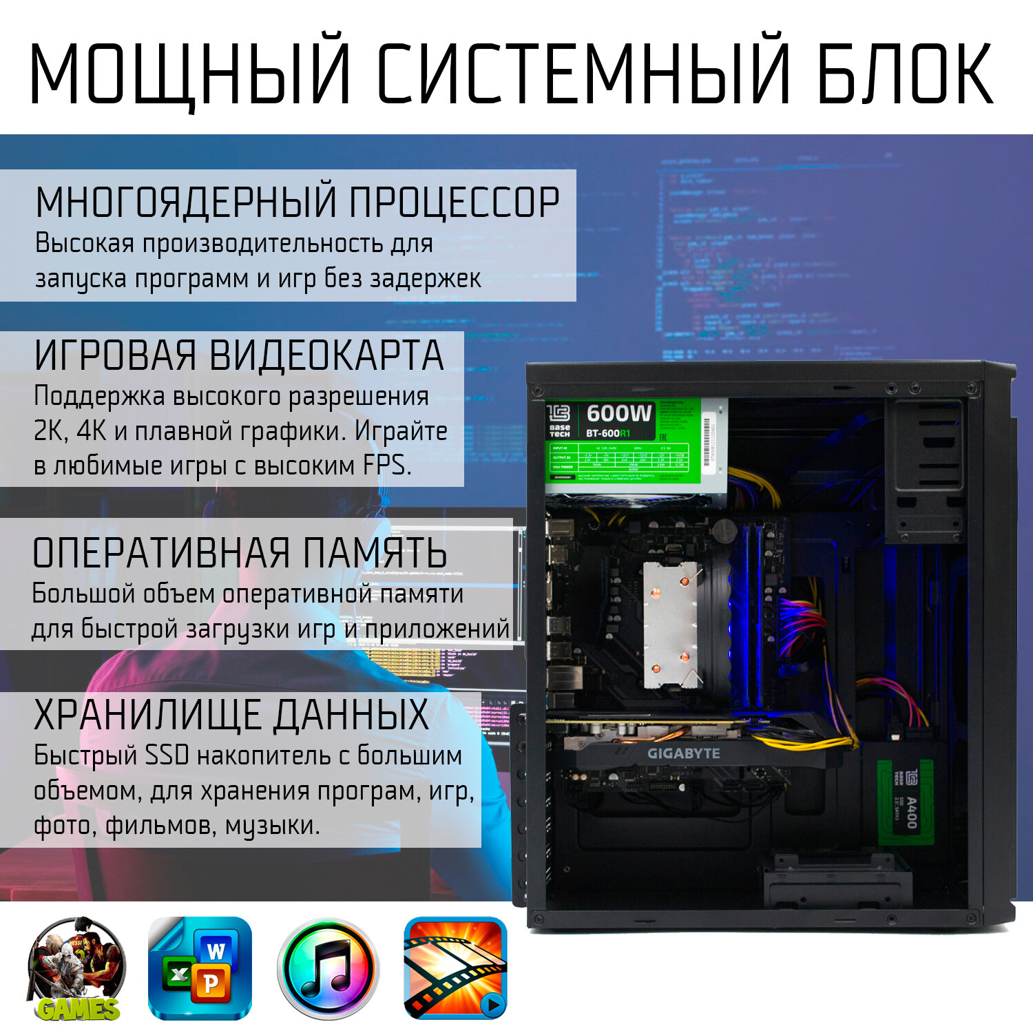 Игровой компьютер INTEL intel Core i7 RX580 16 GB DDR4 512 GB SSD 1000 GB HDD Игровой ПК игровой системный блок интересное: