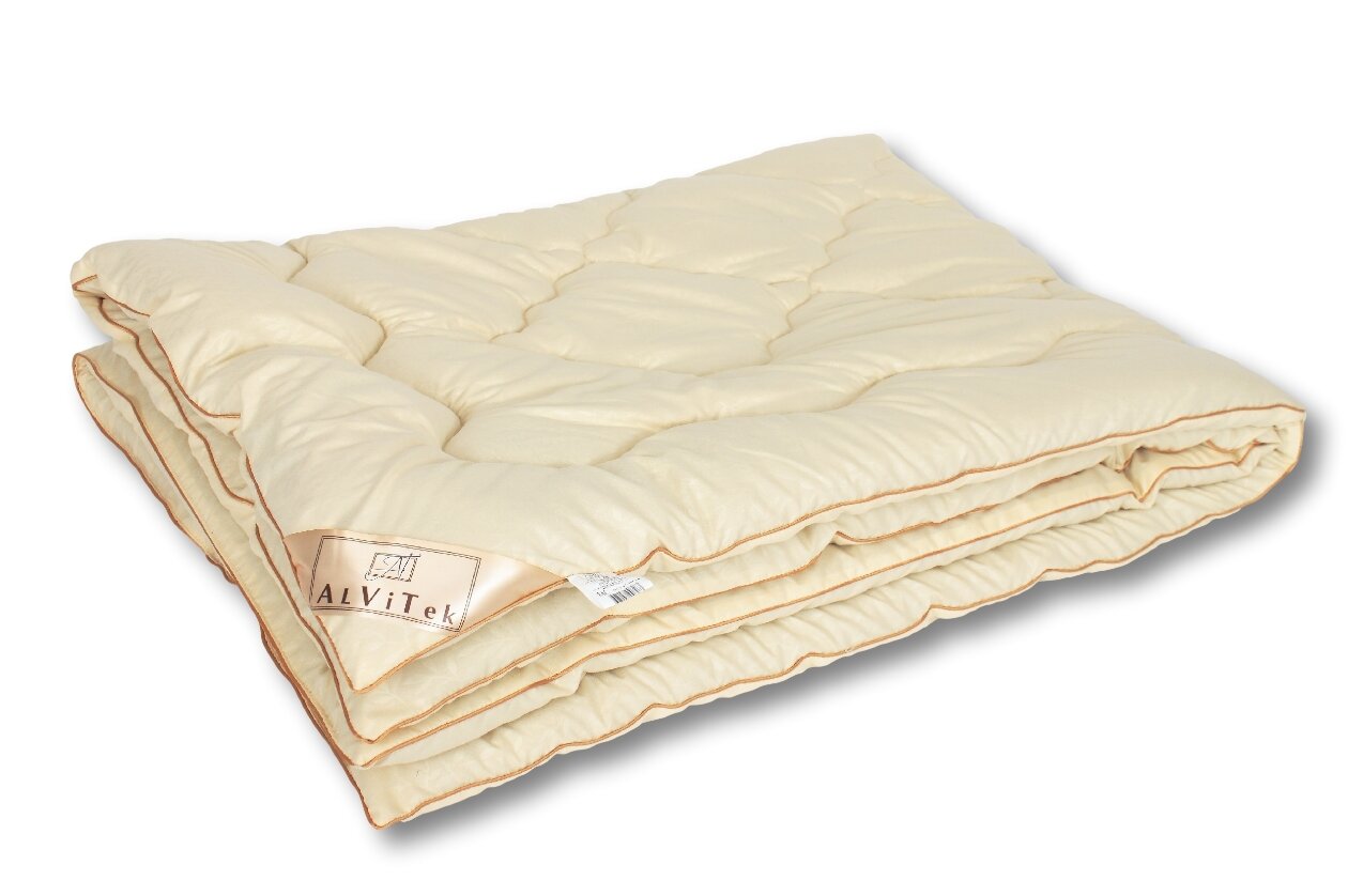 Одеяло летнее AlViTek (АльВиТек) 1.5 спальное, 140х205, облегченное, тонкое, легкое, Микрофибра/Овечья шерсть, Полиэстер, Кремовый, AALV-ОМШ-О-15