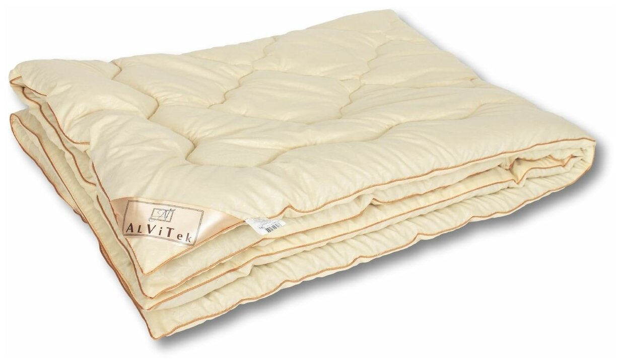 Одеяло всесезонное AlViTek (АльВиТек) 1.5 спальное, 140х205, Микрофибра/Овечья шерсть, Полиэстер, Кремовый, AALV-ОМШ-15