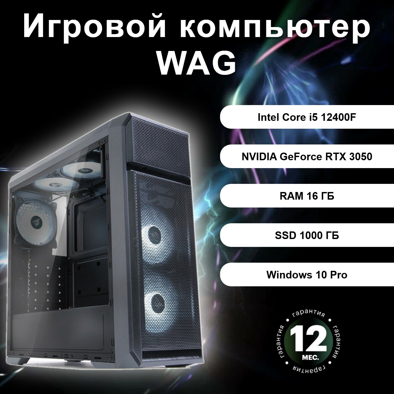 Купить Игровой компьютер WAG 42142316100016 (Intel Core i5 12400F / NVIDIA GeForce RTX 3050 / RAM 16 ГБ / SSD 1000ГБ)