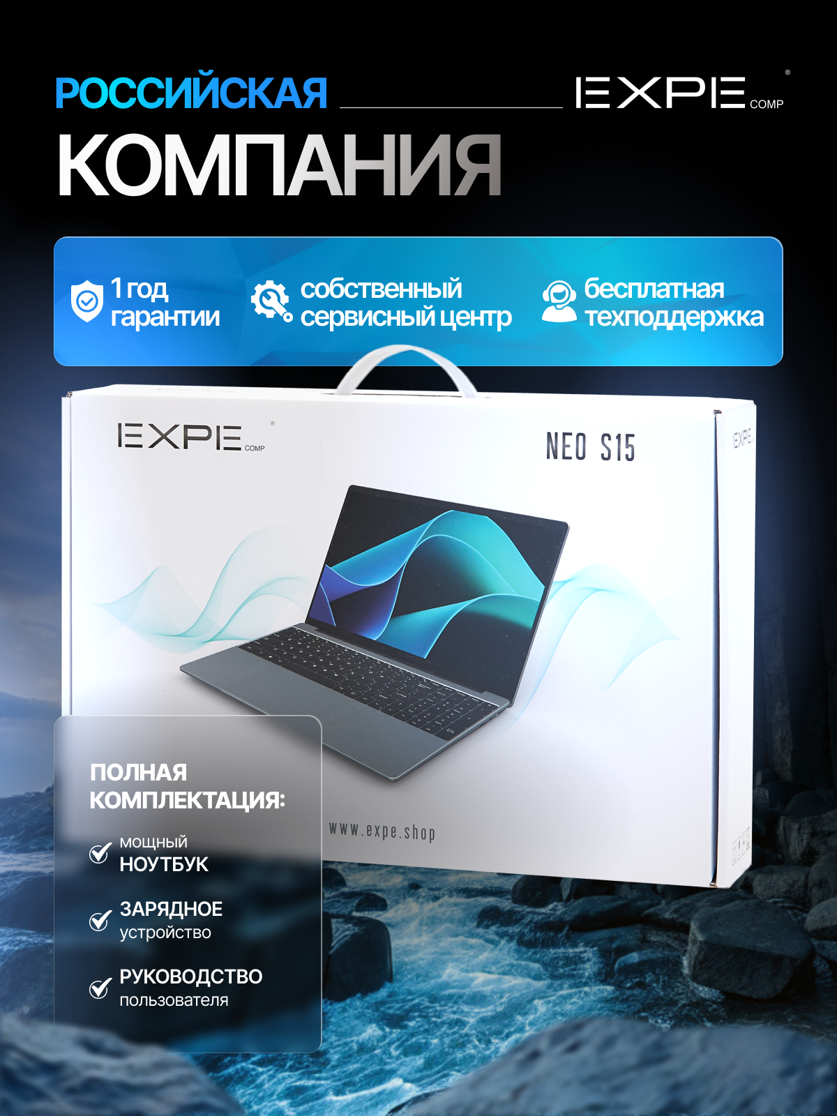 Ноутбук для работы и учебы EXPEcomp NEO S15, Intel N5095 (до 2.9 GHz, 4 ядра), RAM 16 GB, SSD 512 GB, Windows 11 Pro