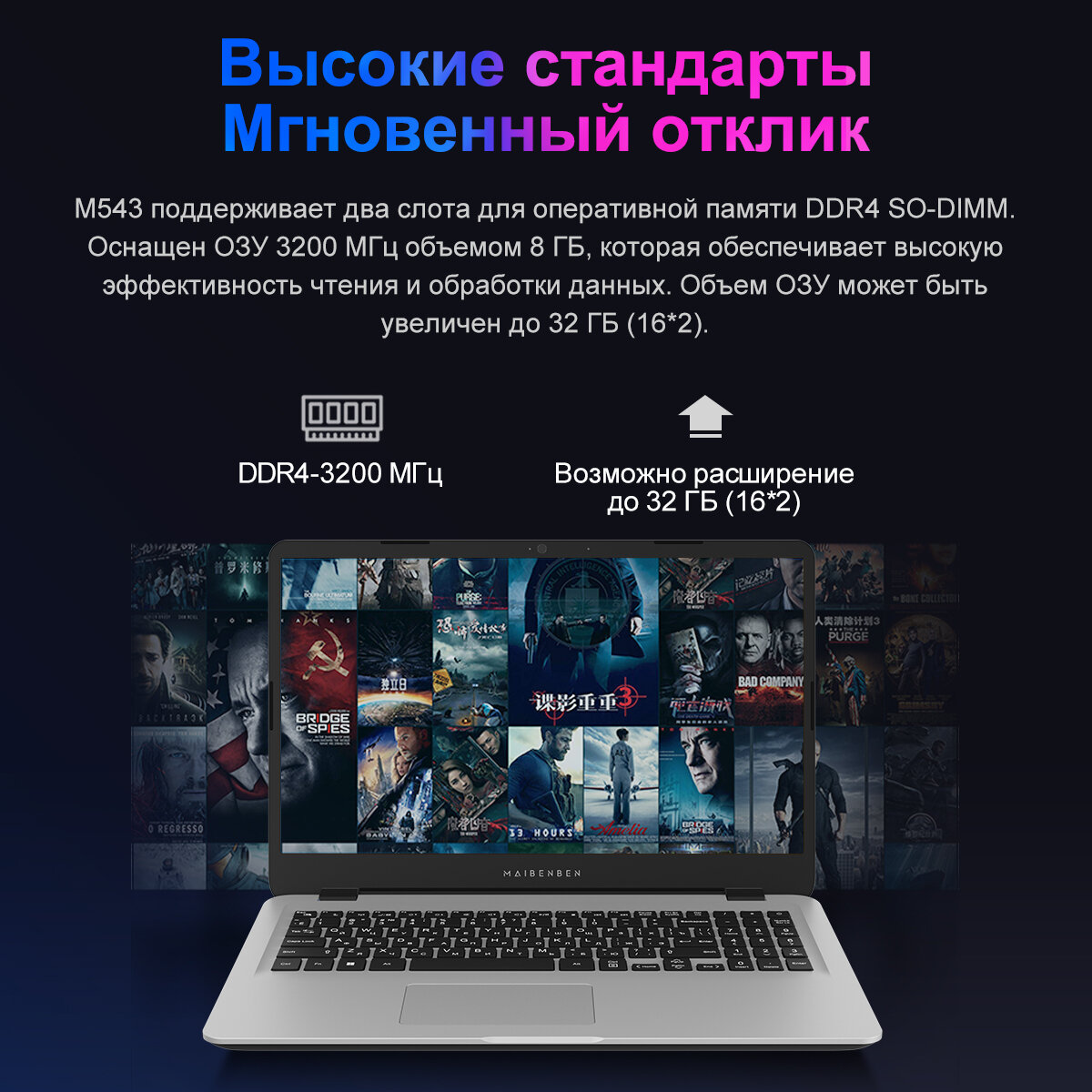 Ноутбук Maibenben M543 R3 4300U 15.6"FHD ADS 8ГБ+512ГБ SSD, windows 11 интересное: