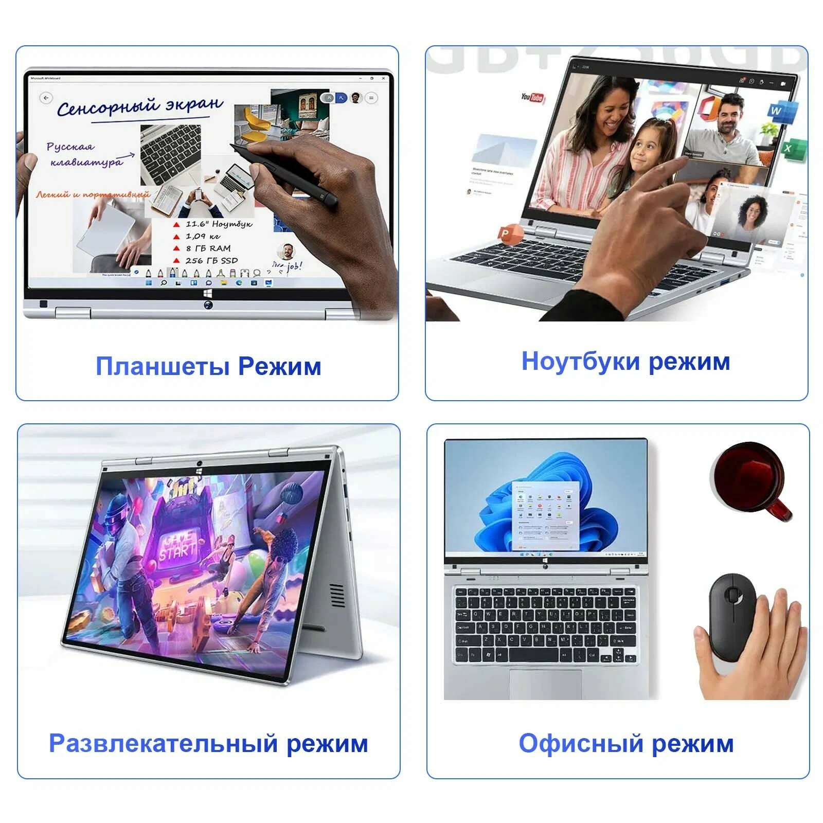 Ноутбук 11.6' 256гб Сенсорный экран, откидывающийся на 360° интересное: