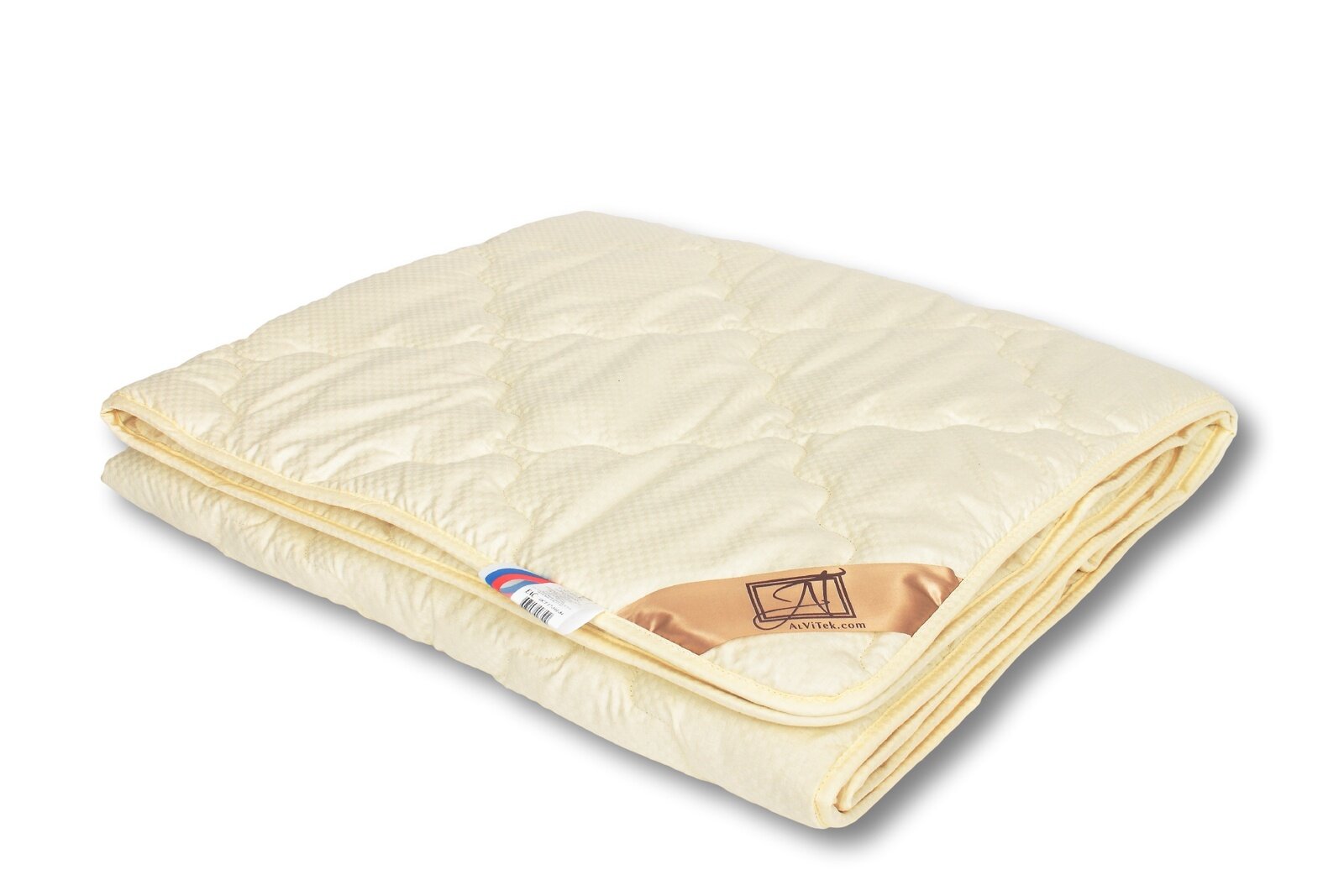 Одеяло летнее AlViTek (АльВиТек) Евро, 200х220, облегченное, тонкое, легкое, Сатин-жаккард/Овечья шерсть Меринос, Полиэстер, Кремовый, AALV-МС-О-22